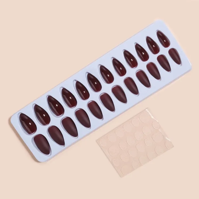 Накладные ногти, 24 шт, с клеевыми пластинами, форма миндаль, цвет бордовый — Характеристики