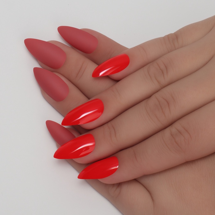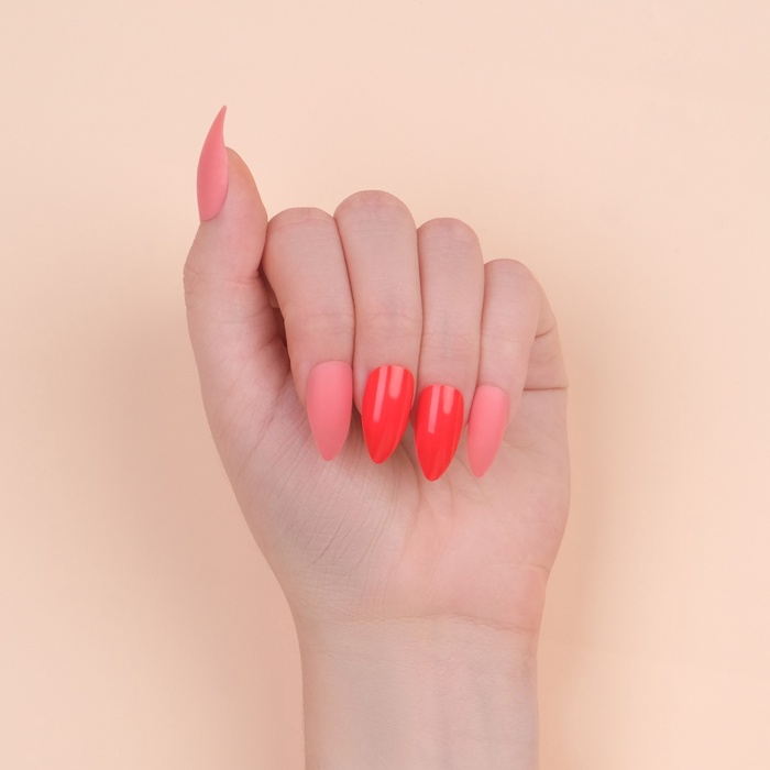 Накладные ногти, 24 шт., с клеевыми пластинами, форма миндаль, цвет неоновые/матовые, розовые — Характеристики