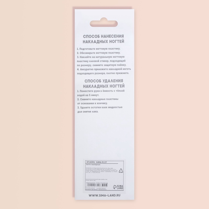Максимальный срок носки накладных ногтей – 14 дней. Не рекомендуем перенашивать. При бережном ношении могут использоваться несколько раз.