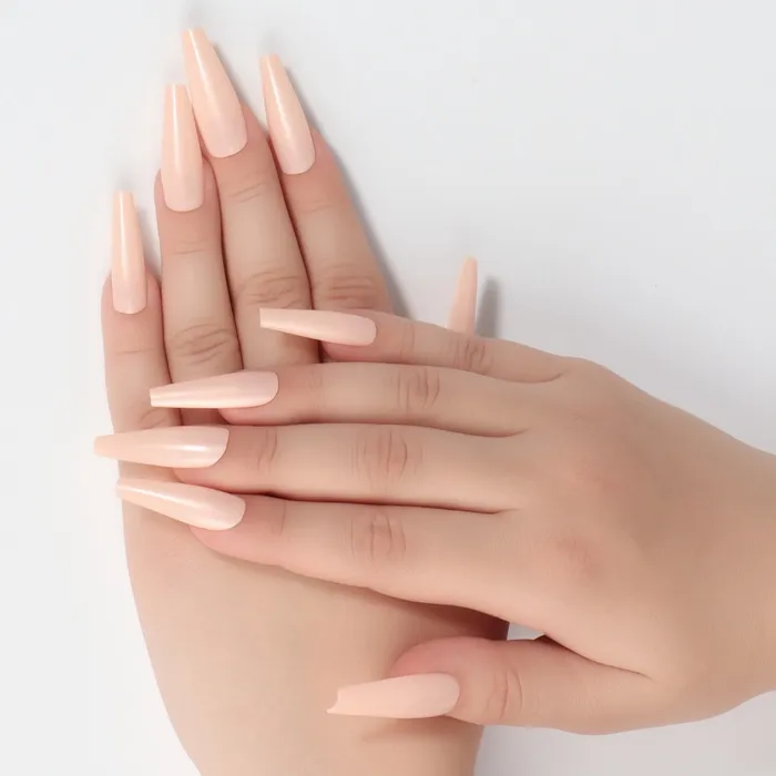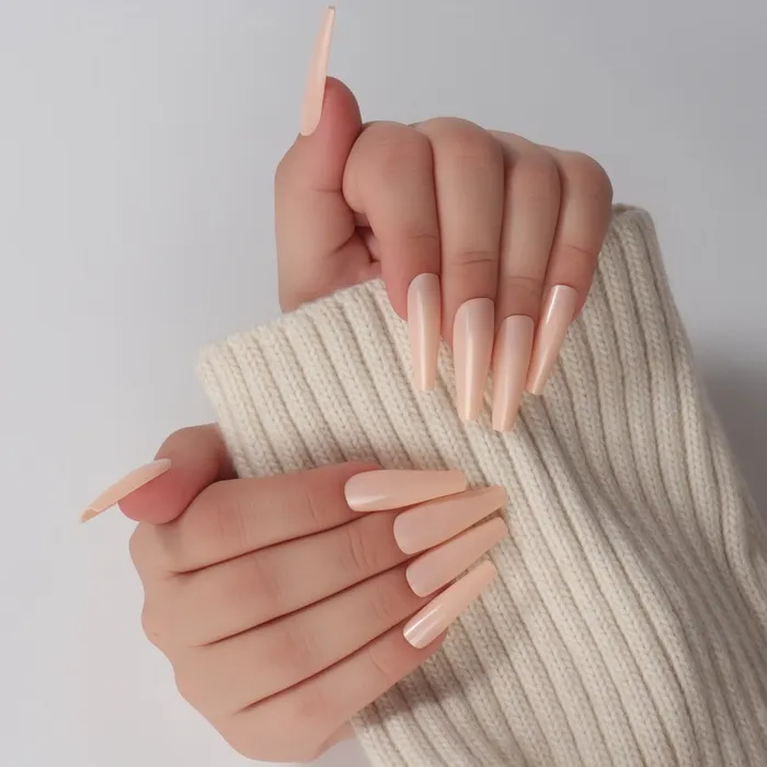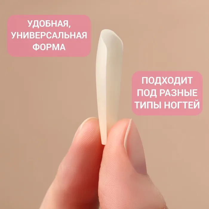 Эти накладные ногти созданы для тех, кто ценит простоту и функциональность. Они подходят как для повседневного использования, так и для профессиональной работы. Бежевый цвет выполняет роль базового, словно «незаметный фон», который при этом всегда уместен. Форма «балерина» добавляет лёгкости и элегантности, не требуя жертвовать комфортом.
