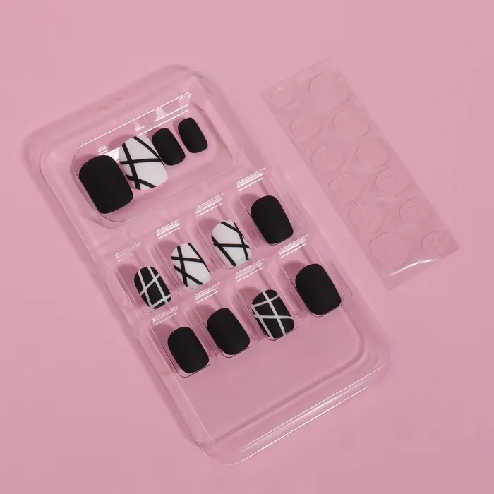 В наборе с накладными ногтями идут клеевые пластины. За счёт этого уменьшается вероятность механического травмирования природного ногтя. Клеевые пластины безопасны в применении и не вредят натуральным ногтям, в отличие от клея. Клей содержит составе высокую токсичность, что может сказаться на вашем организме.