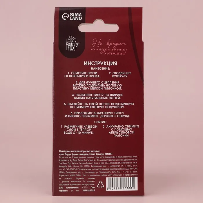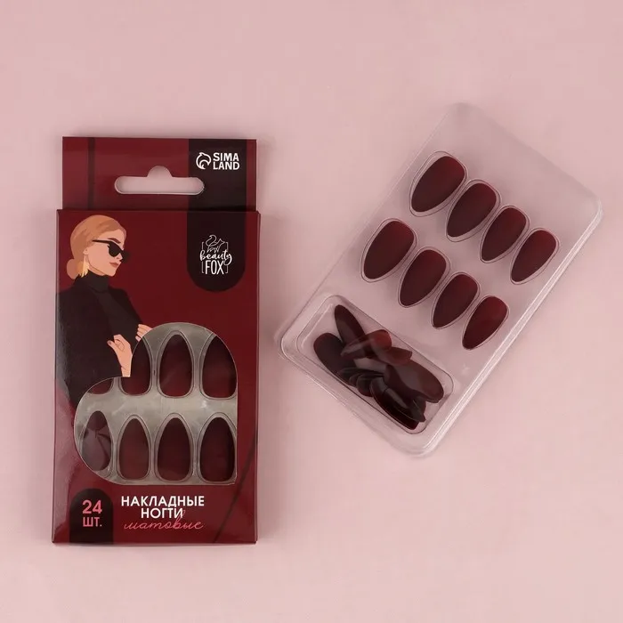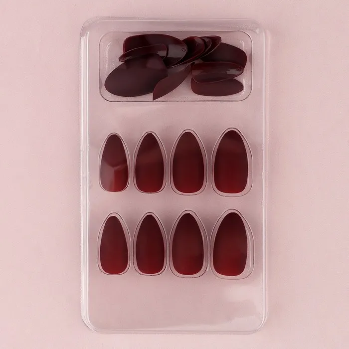 Накладные ногти «Бордо», 24 шт., клеевые пластины, форма миндаль, матовые, бордовые — Характеристики