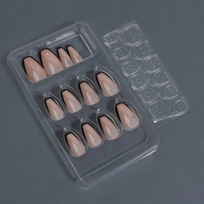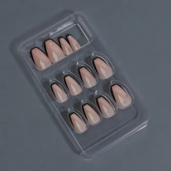Создайте элегантный и изысканный маникюр за считаные минуты с набором накладных ногтей «Franch». Этот набор из 12 ногтей с клеевыми пластинами позволит вам наслаждаться идеальной формой балерины и стильным дизайном, не посещая салон. Бежево-чёрные оттенки гармонично сочетаются с любыми образами, подчёркивая вашу индивидуальность.