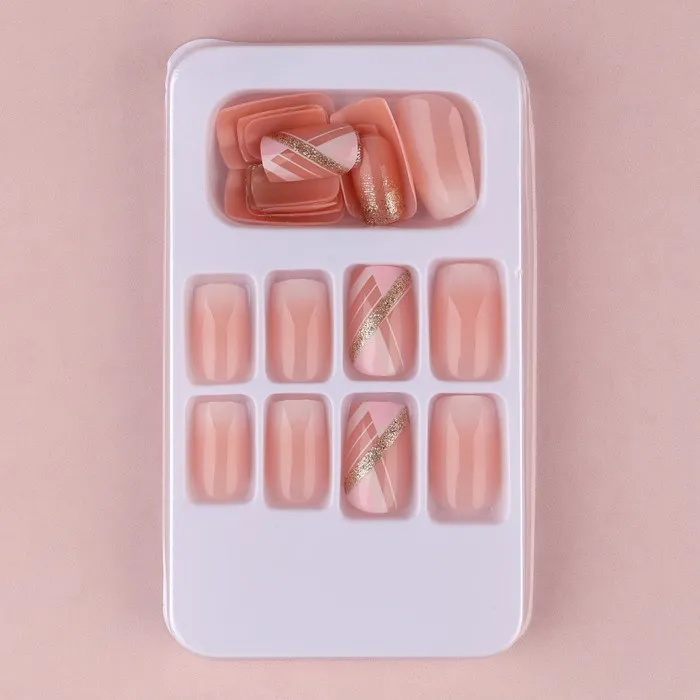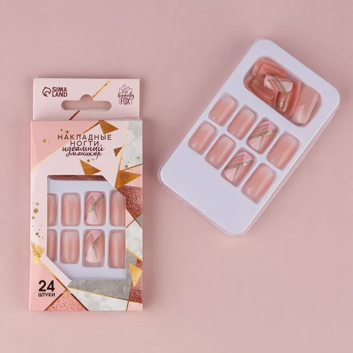 Накладные ногти «Геометрия», 24 шт., клеевые пластины, форма квадрат, розовые — Характеристики