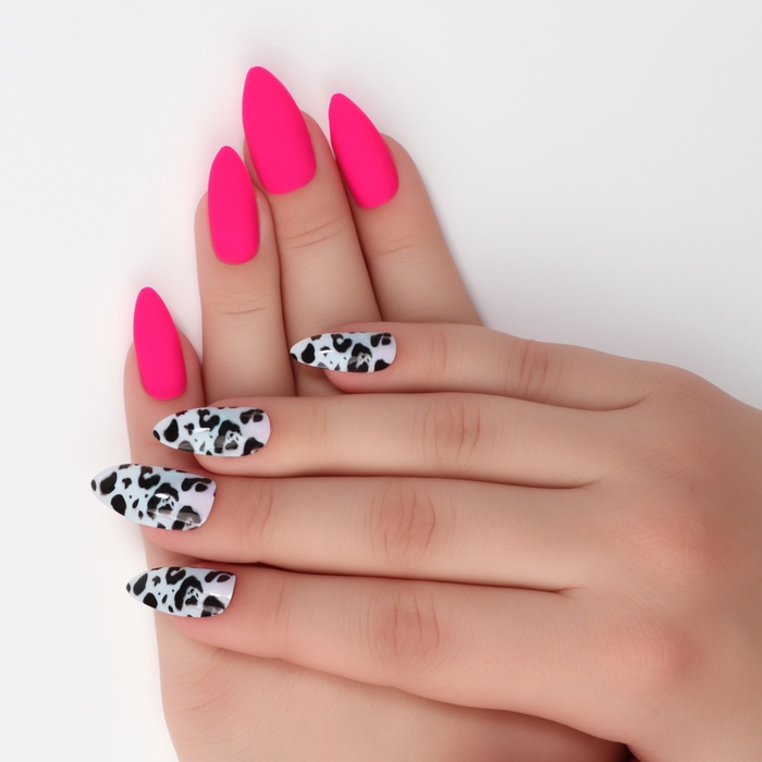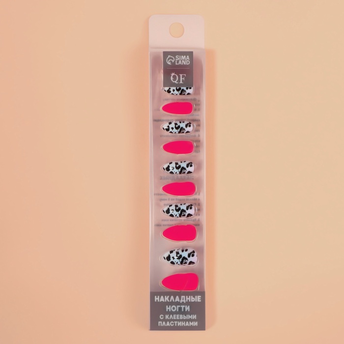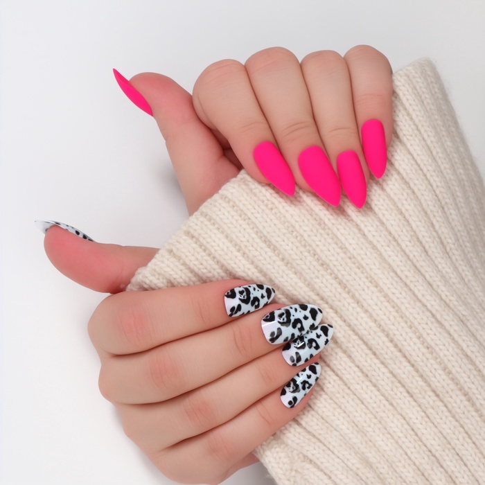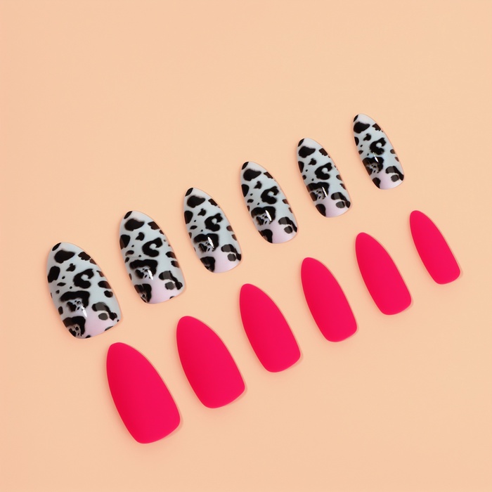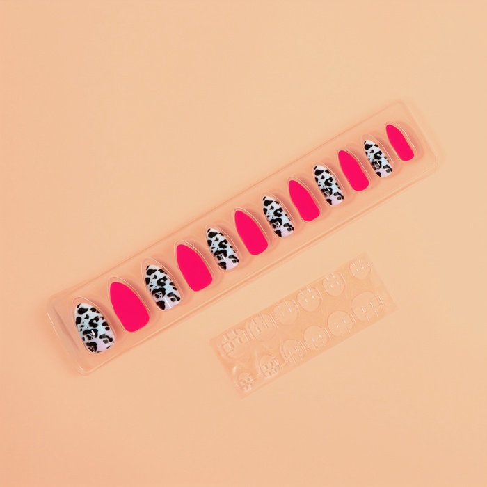 Накладные ногти «Лео», 12 шт., с клеевыми пластинами, форма миндаль, чёрные, розовые — Характеристики