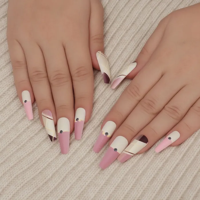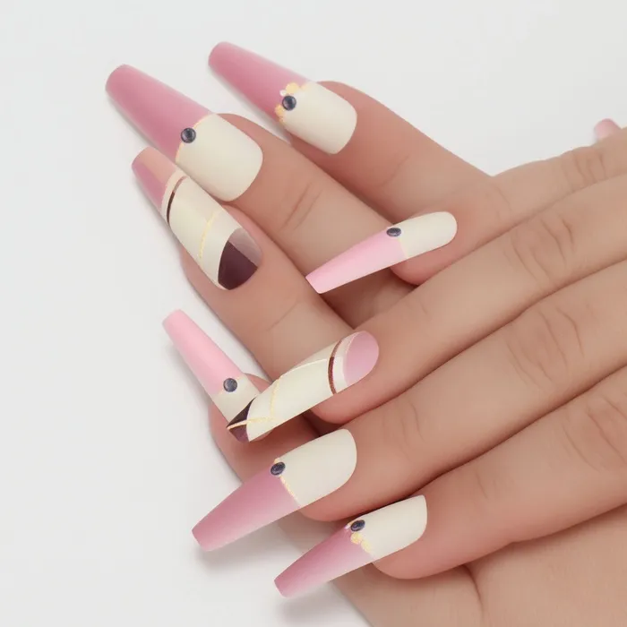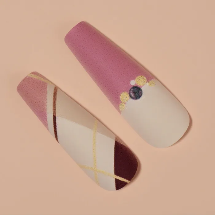 Легкость в использовании: благодаря клеевым пластинам, вы сможете зафиксировать ногти быстро и без специального клея.- Форма балерина: стильная и утончённая, идеально подходит для любого случая, будь то будни или праздничное событие.