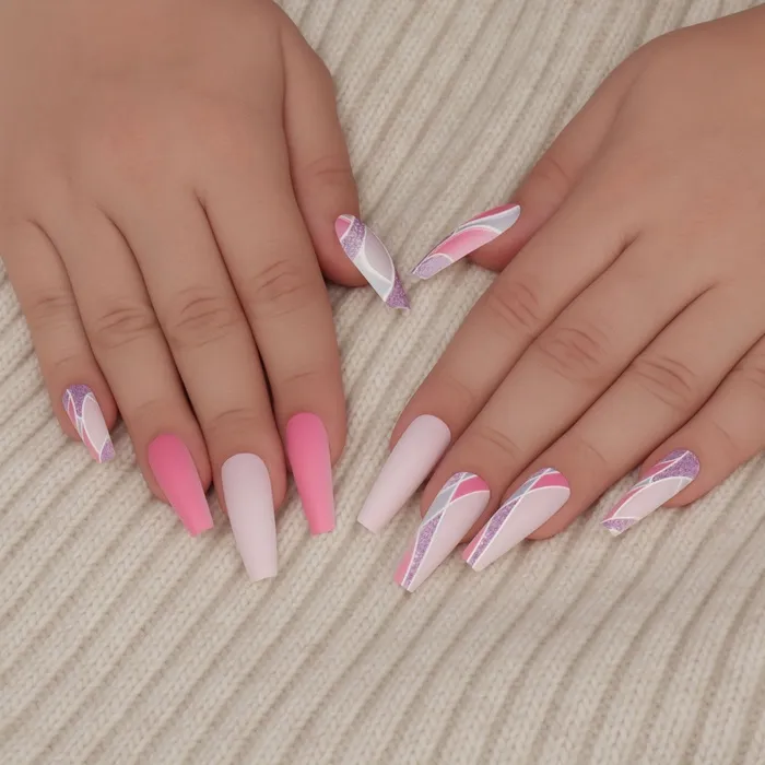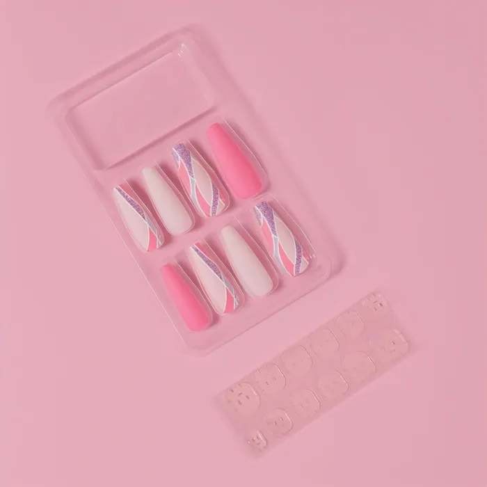 Легкость в использовании: благодаря клеевым пластинам, вы сможете зафиксировать ногти быстро и без специального клея.- Форма балерина: стильная и утончённая, идеально подходит для любого случая, будь то будни или праздничное событие.