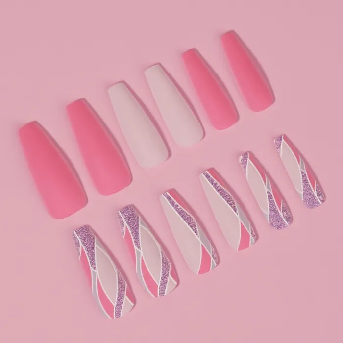 Накладные ногти «Розовое настроение», 12 шт., с клеевыми пластинами, форма балерина, разноцветные — Характеристики