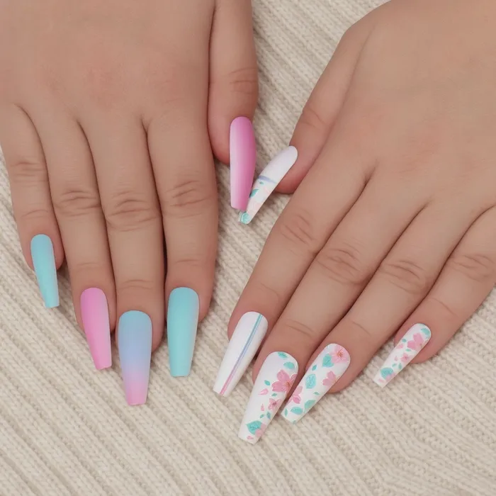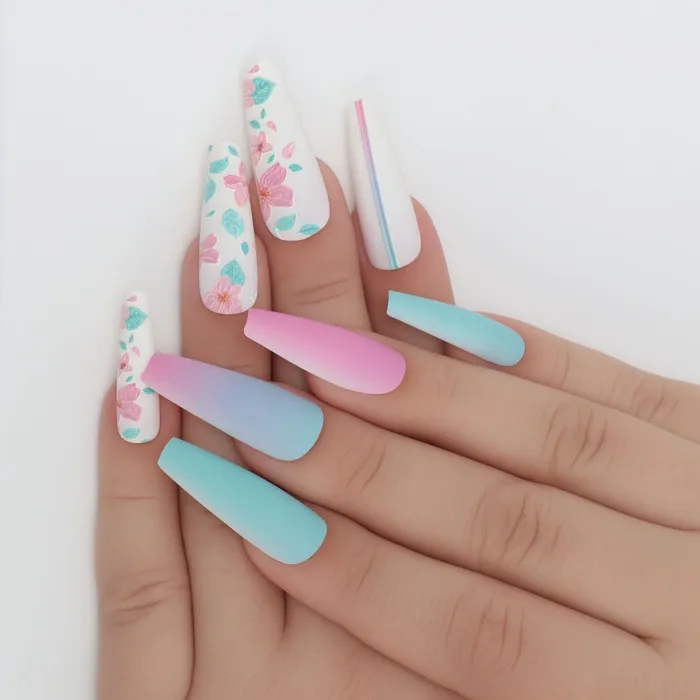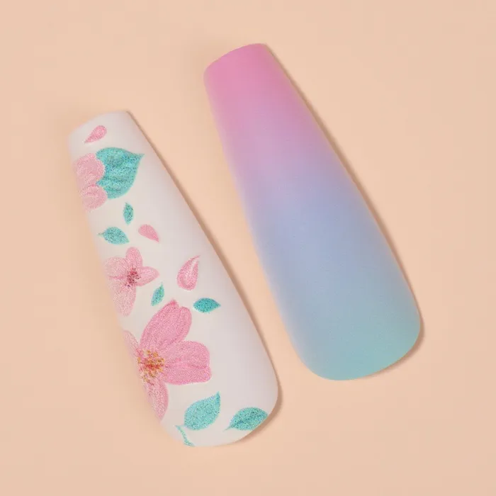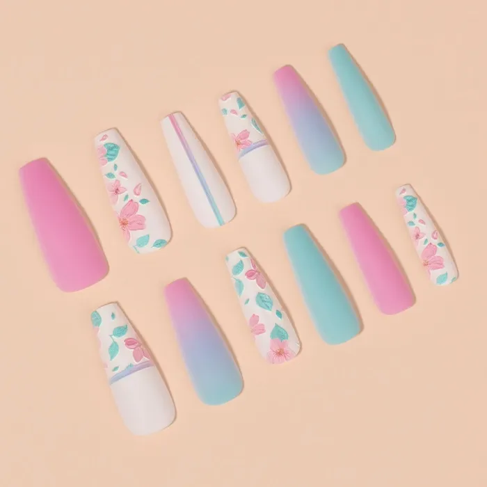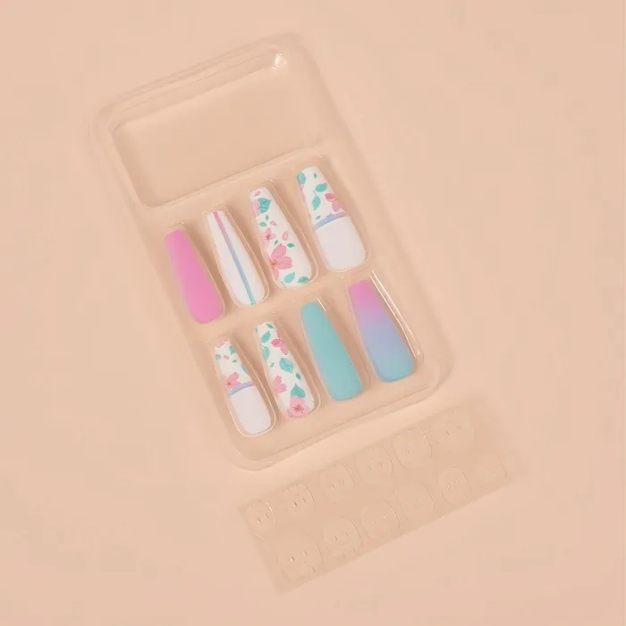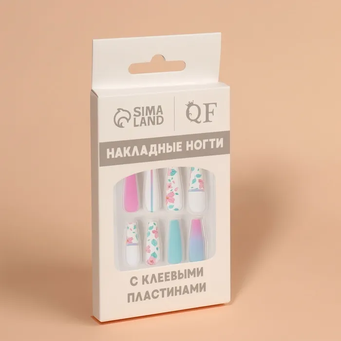 Накладные ногти «Цветочки», 12 шт., с клеевыми пластинами, форма балерина, разноцветные — Характеристики