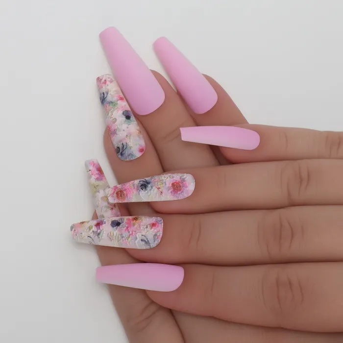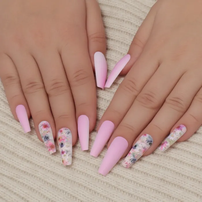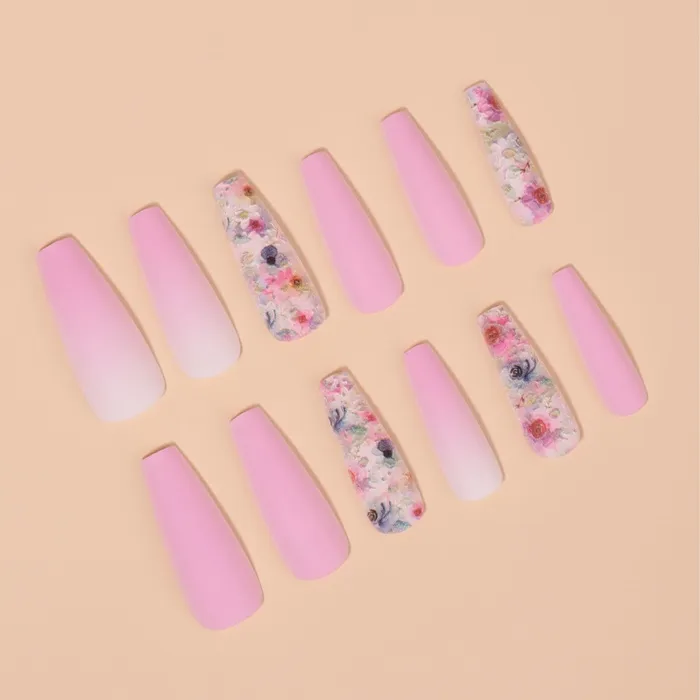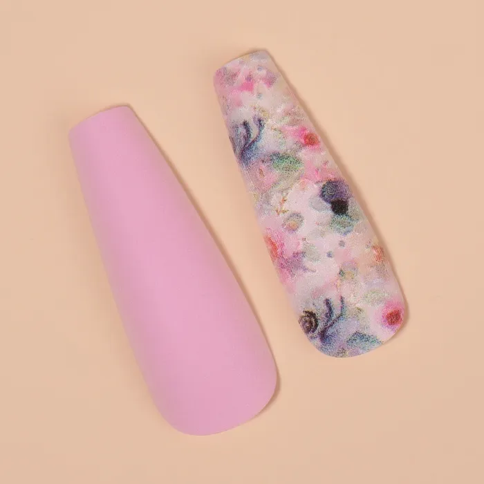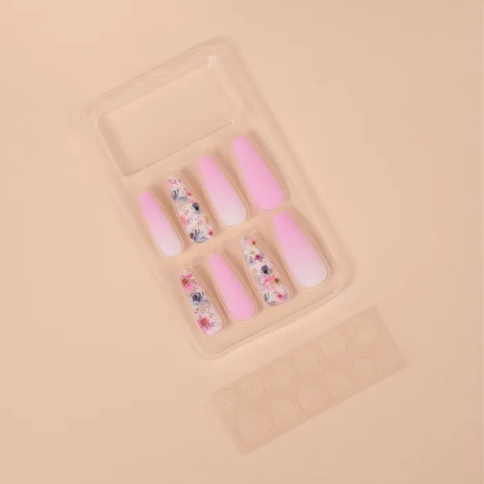 Накладные ногти «Цветы», 12 шт., с клеевыми пластинами, форма балерина, разноцветные — Характеристики