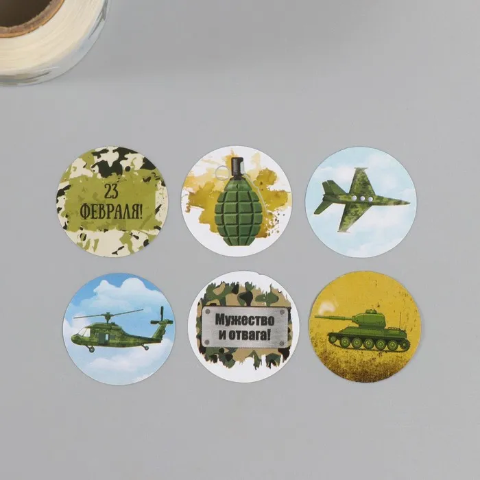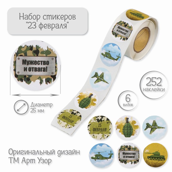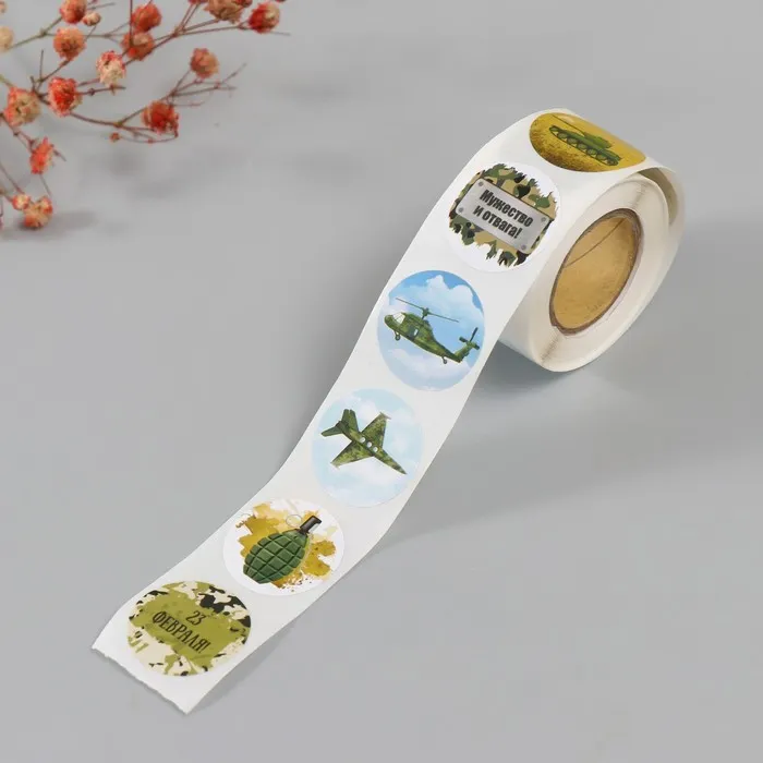 Наклейка бумага «23 Февраля», d=2.5 см, 252 шт. в рулоне — Характеристики