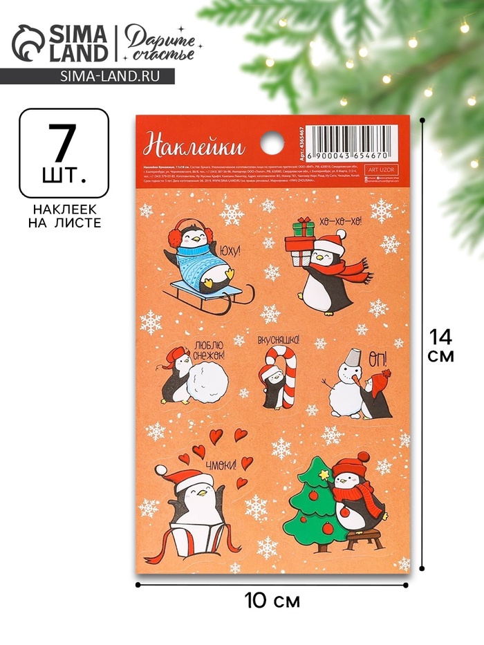 Наклейки новогодние бумажные «Пингвинчик», 10 х 14 см