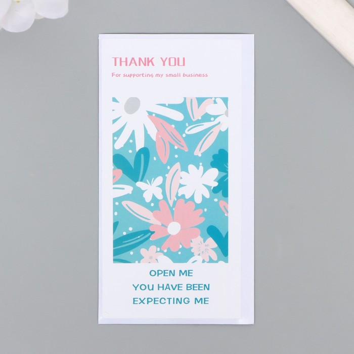 Наклейка бумага благодарность "Цветы с бабочкой" набор 50 шт 10х5 см