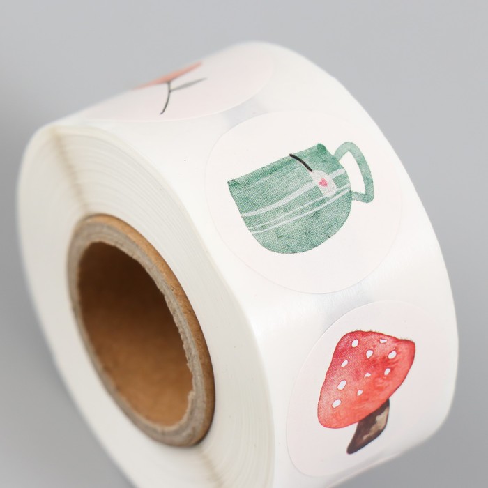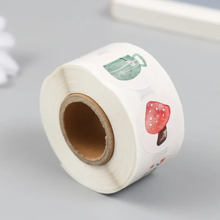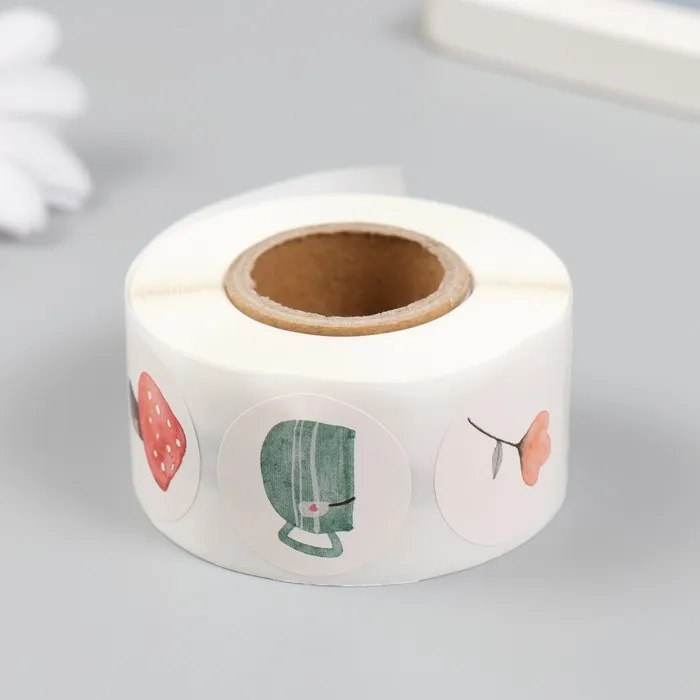 Наклейка бумага «Акварельные рисунки», d=2.5 см, 500 шт. в рулоне, 3×6.5×6.5 см — Характеристики