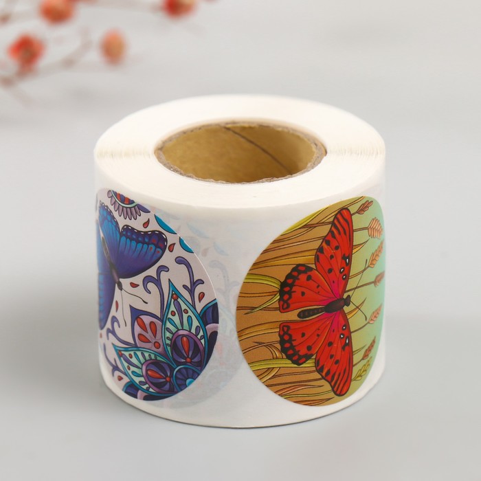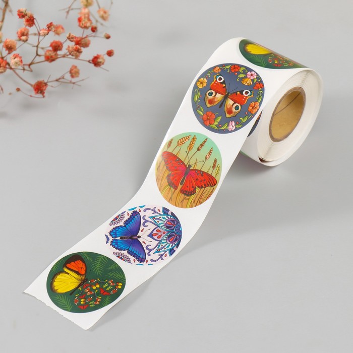 Наклейка бумага «Бабочки», d=3.8 см, 252 шт. в рулоне