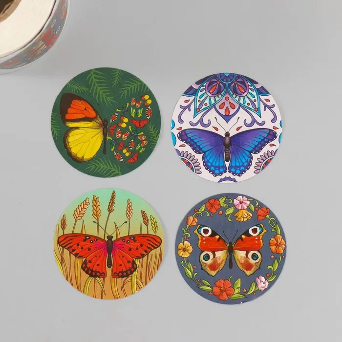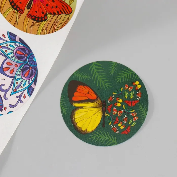 Наклейка бумага «Бабочки», d=3.8 см, 252 шт. в рулоне — Характеристики