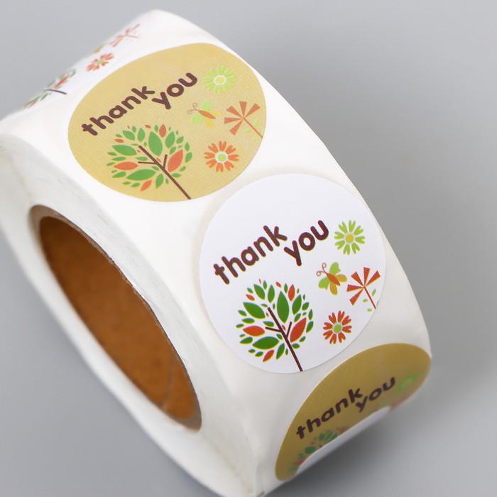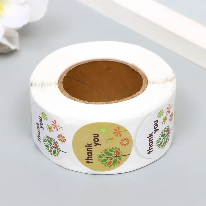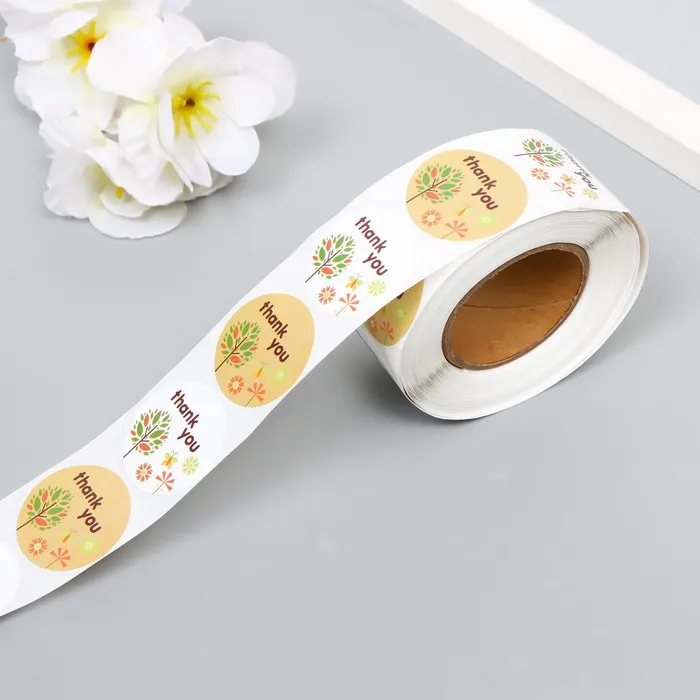 Наклейка бумага "Благодарность" d=2,5 см 500 шт в рулоне 3х6х6 см — Характеристики