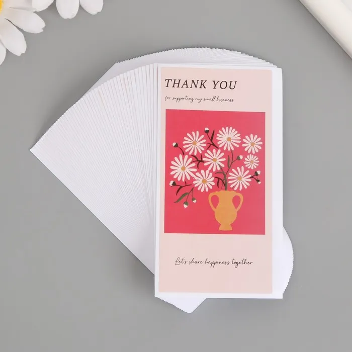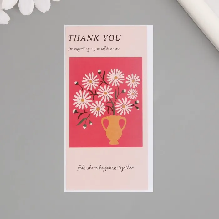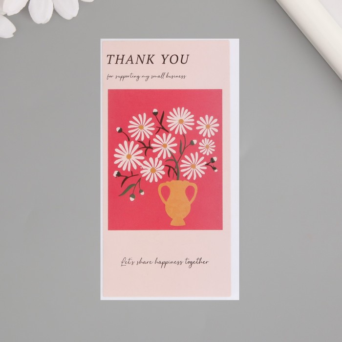 Наклейка бумага благодарность "Ромашки в вазе" набор 50 шт 10х5 см — Характеристики