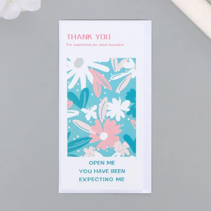 Наклейка бумага благодарность "Цветы с бабочкой" набор 50 шт 10х5 см — Характеристики