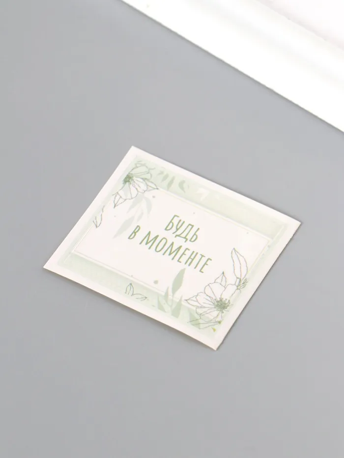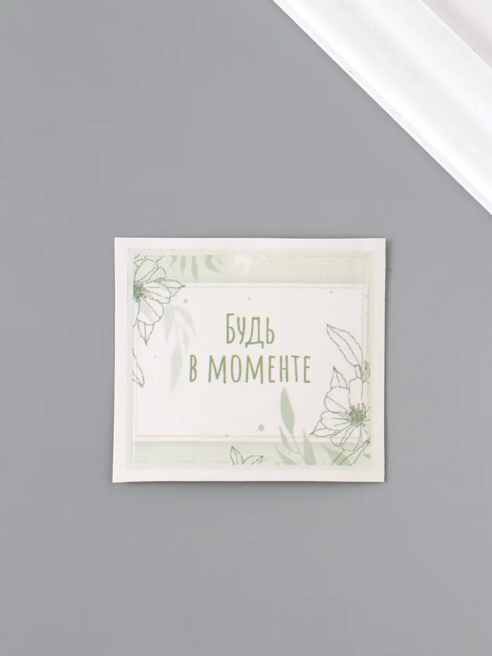 Эта бумажная наклейка с вдохновляющей надписью «Будь в моменте» станет стильным акцентом для оформления подарков и праздничных аксессуаров. Благодаря компактному размеру 4.5×4 см она легко впишется в любой дизайн, добавляя тепла и индивидуальности каждой детали.