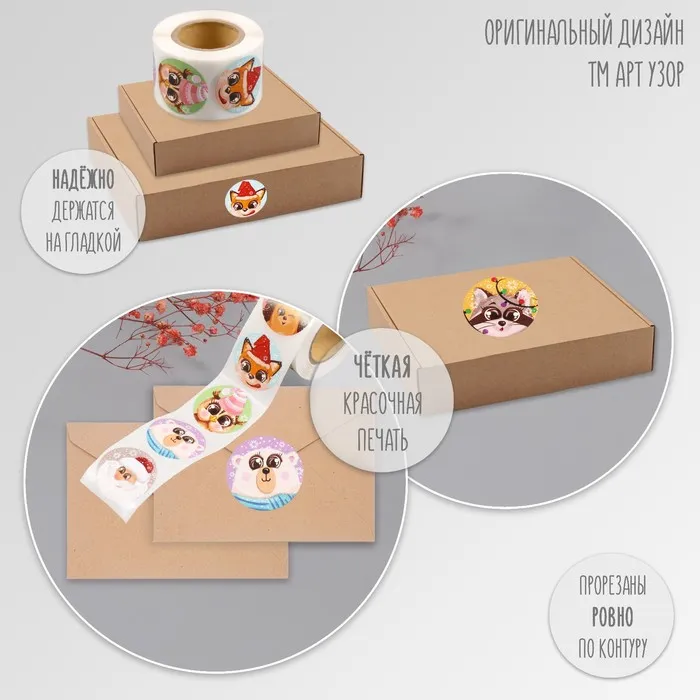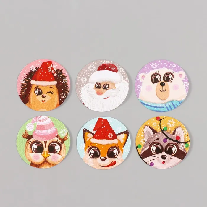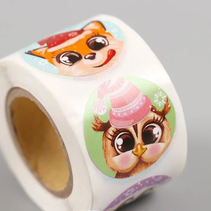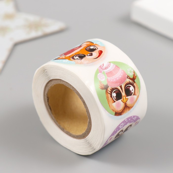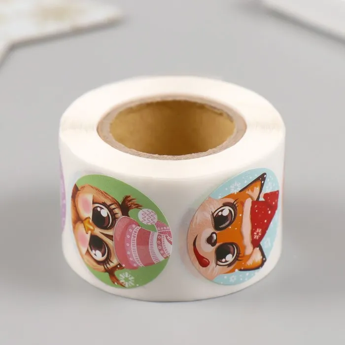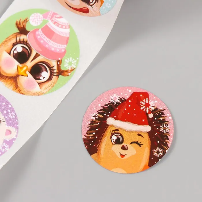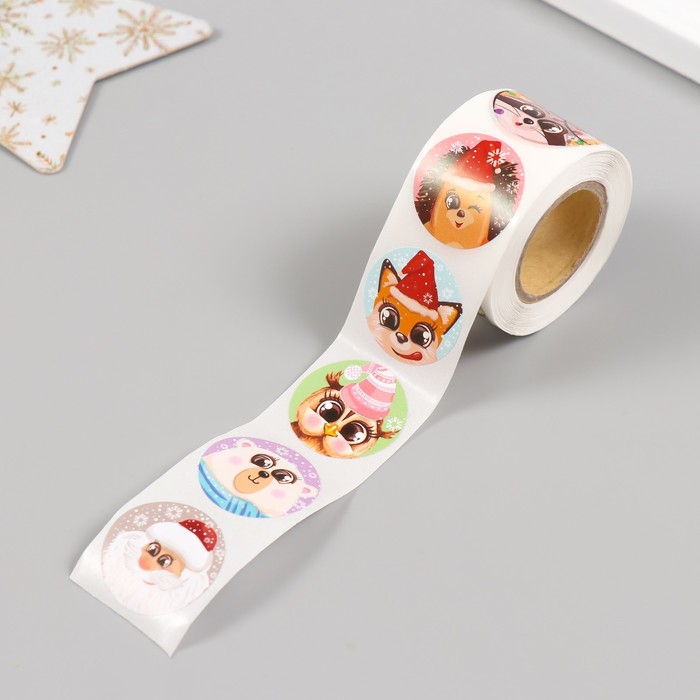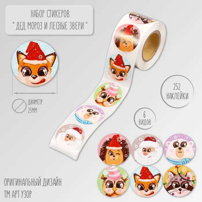 Наклейка бумага "Дед Мороз и лесные звери" d=2,5 см 252 шт в рулоне — Характеристики