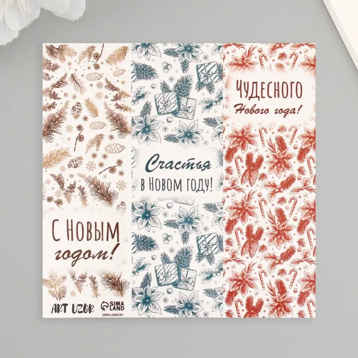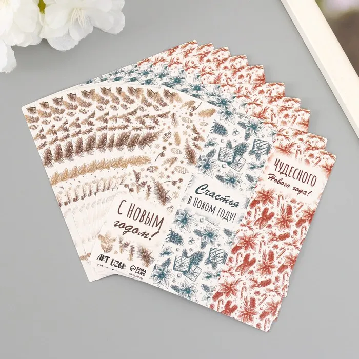 Наклейка бумага "Еловые веточки и шишки" 3х9 см лист 10х10 см — Характеристики