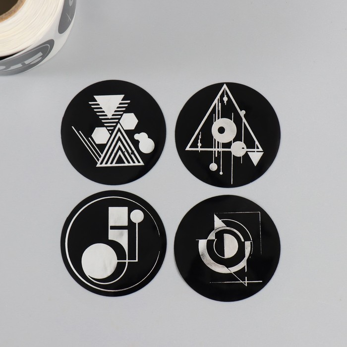 Наклейка бумага «Геометрия абстракция», тиснение серебро, d=3.8 см, 252 шт. в рулоне — Характеристики