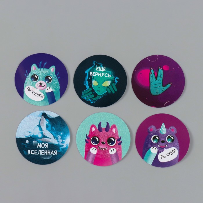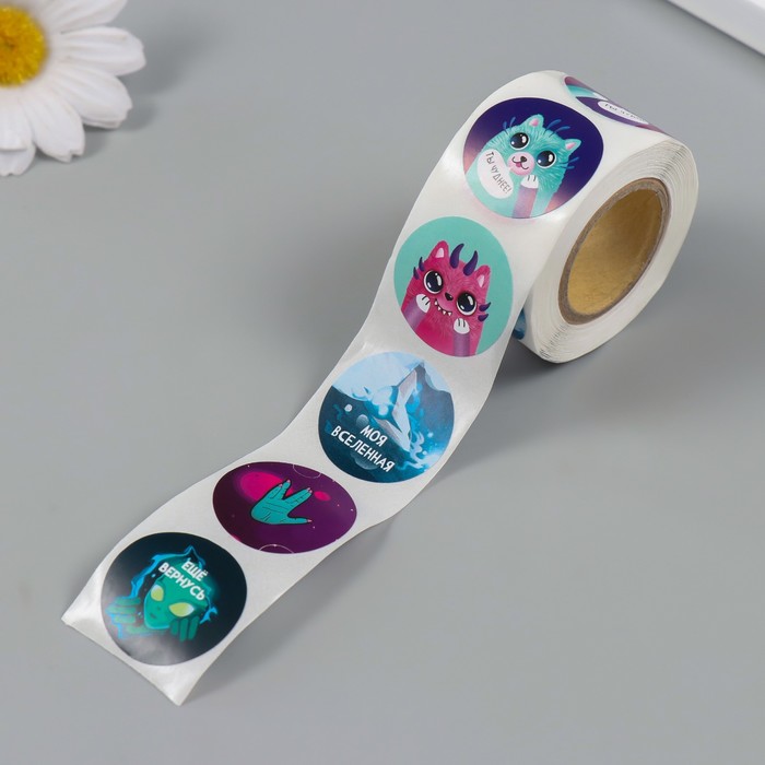 Наклейка бумага «Инопланетные», d=2.5 см, 252 шт. в рулоне