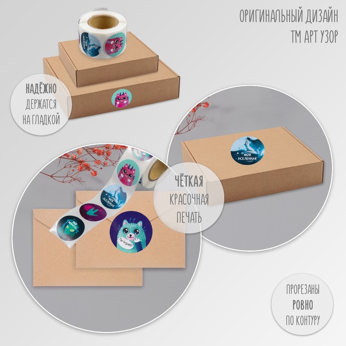 Наклейка бумага «Инопланетные», d=2.5 см, 252 шт. в рулоне — Характеристики