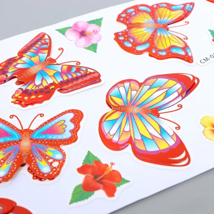 Наклейка бумага интерьерная "Бабочки и цветы" с глиттером 33х14,5 см — Характеристики