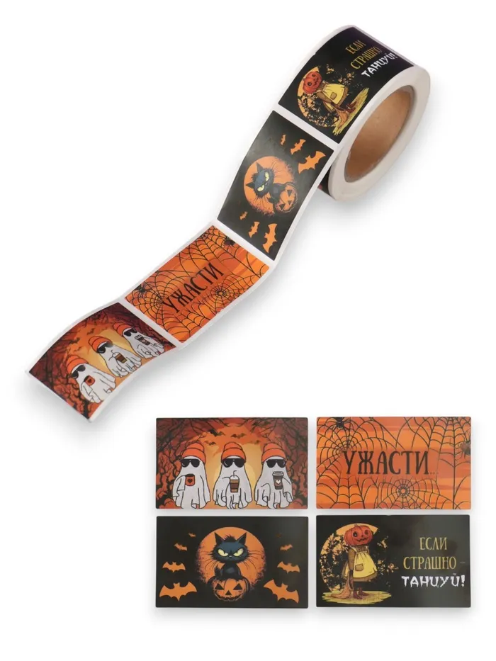 Наклейка бумага "Хэллоуин" 3х5 см 200 шт в рулоне — Характеристики
