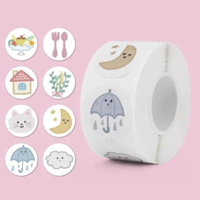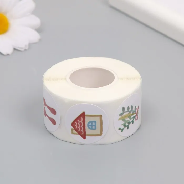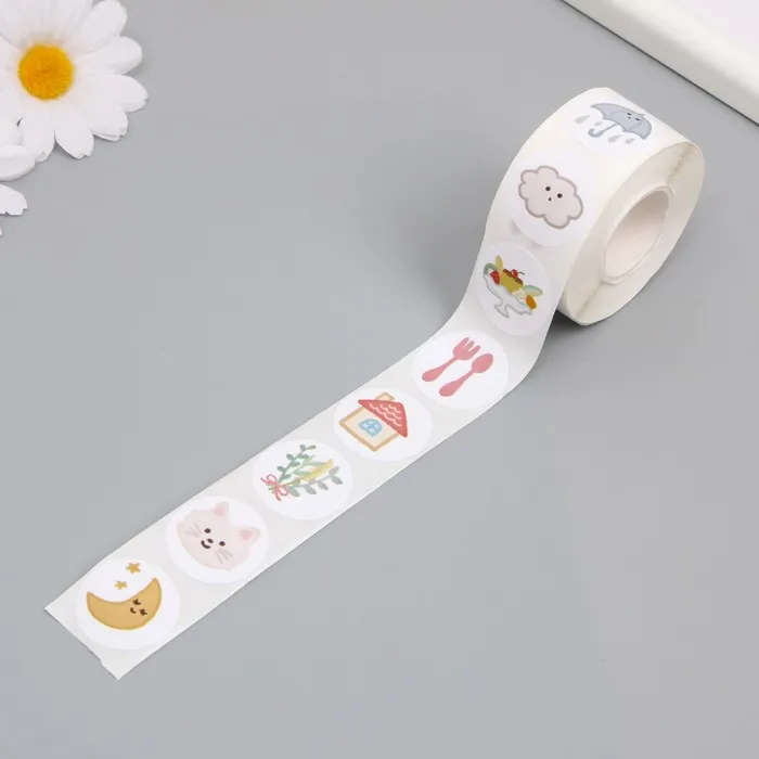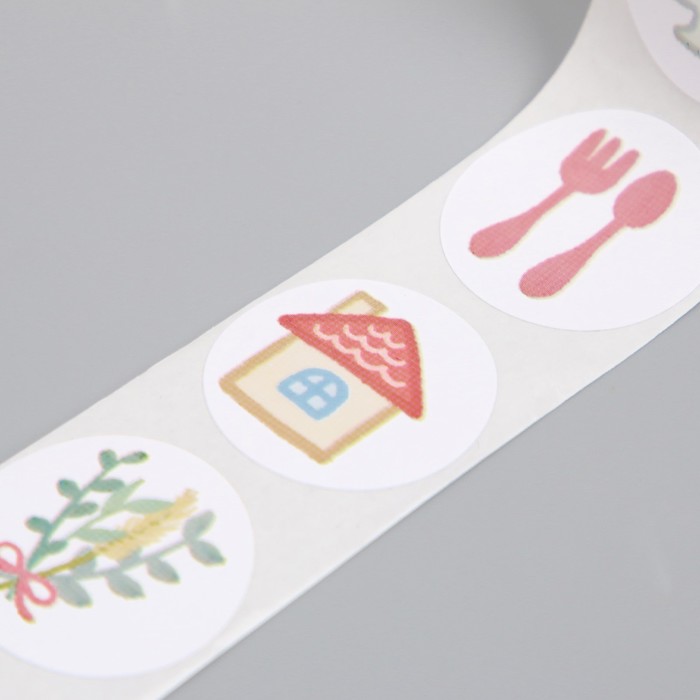 Наклейка бумага «Котик на даче», d=2.5 см, 500 шт. в рулоне, 3×5.5×5.5 см — Характеристики
