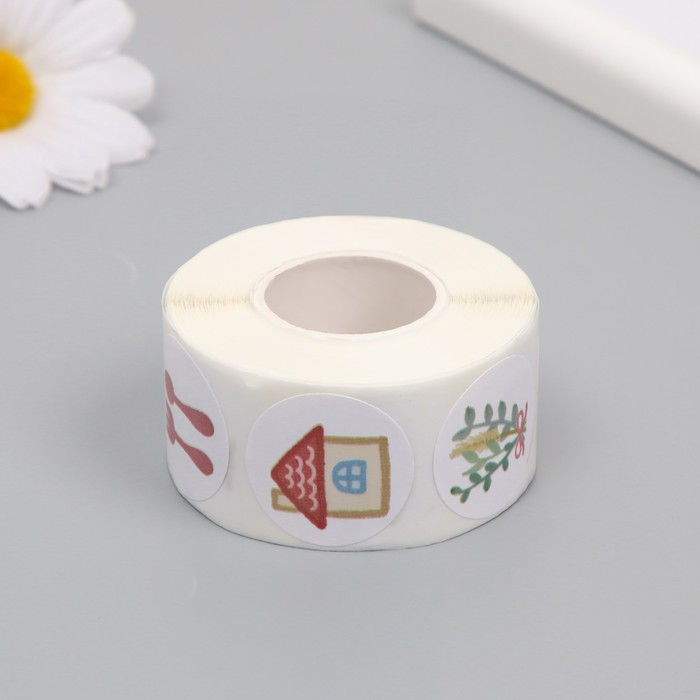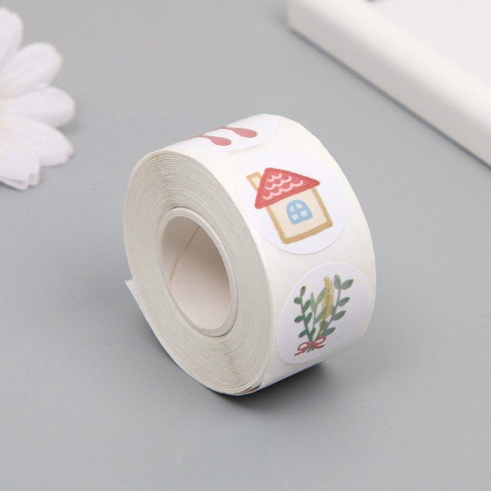 Наклейка бумага «Котик на даче», d=2.5 см, 500 шт. в рулоне, 3×5.5×5.5 см