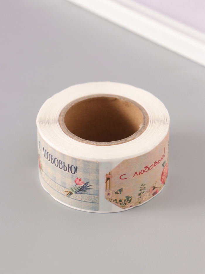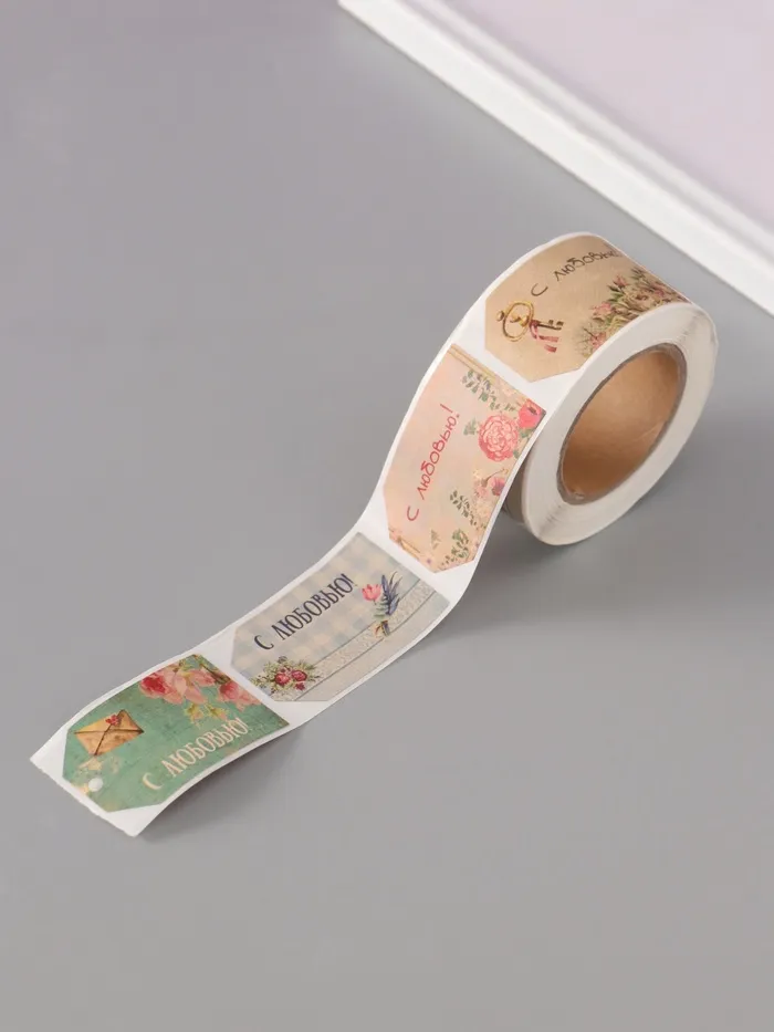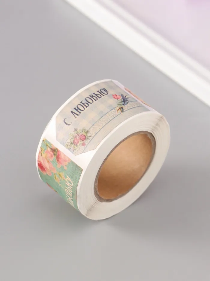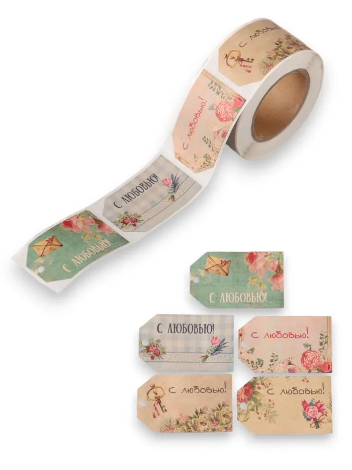 Наклейка бумага крафт "Бирки. Цветы. Винтаж" 3х5 см 200 шт в рулоне — Характеристики