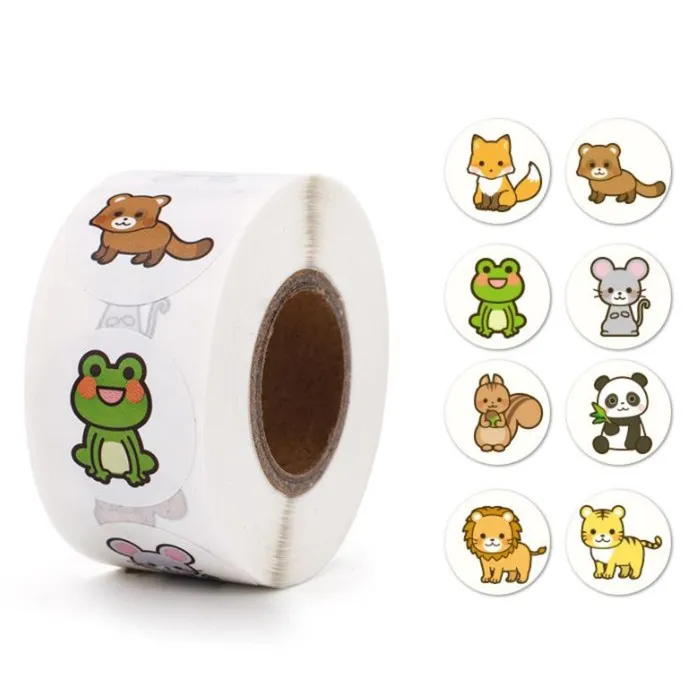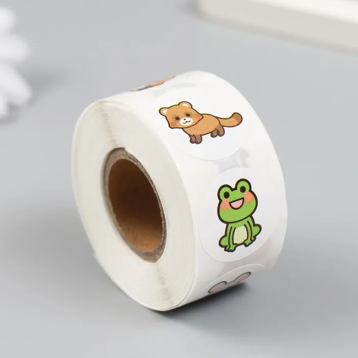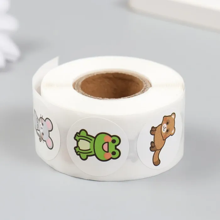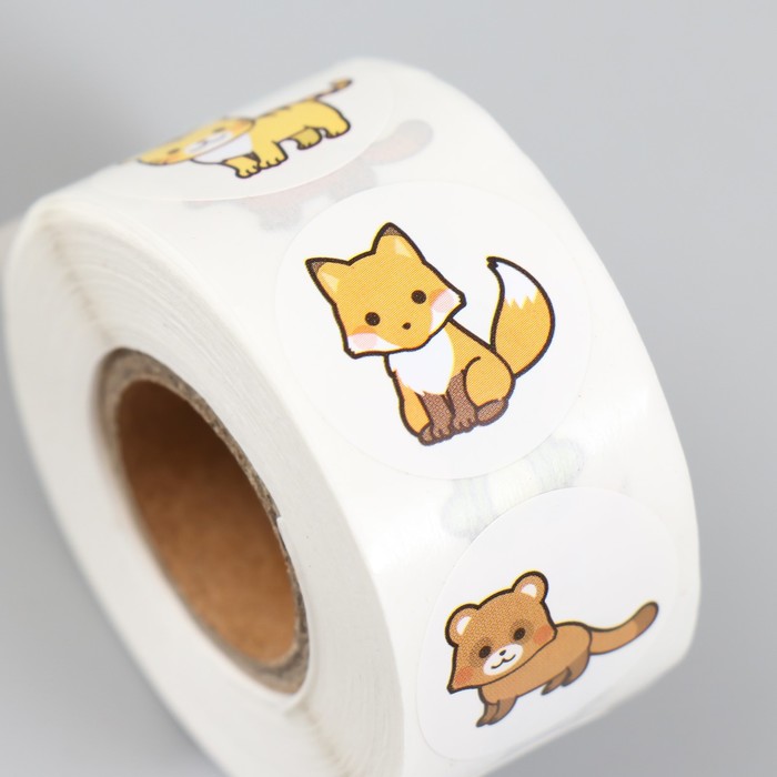 Наклейка бумага «Лесные звери», d=2.5 см, 500 шт. в рулоне, 3×6.5×6.5 см — Характеристики