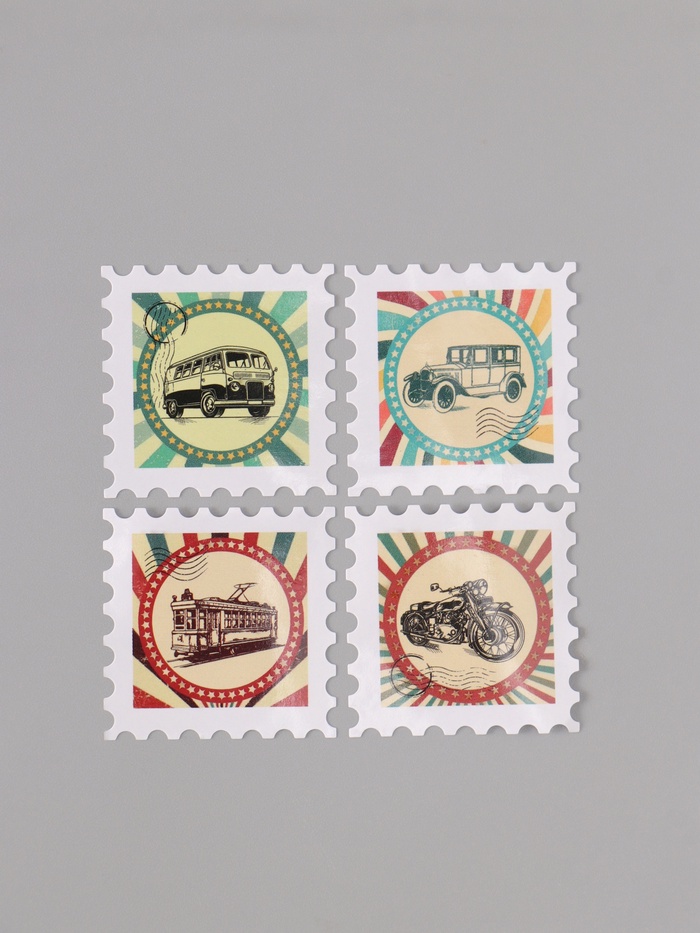Наклейка бумага «Марки. Ретро транспорт», 3×3 см, 200 шт. в рулоне — Характеристики