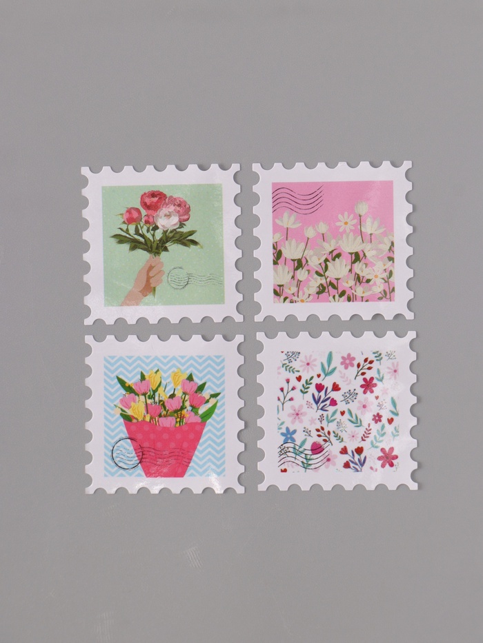 Наклейка бумага «Марки. Цветочки», 3×3 см, 200 шт. в рулоне — Характеристики