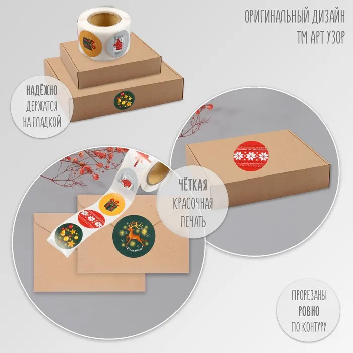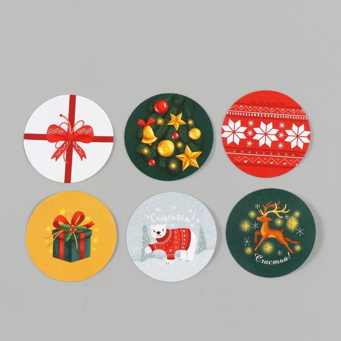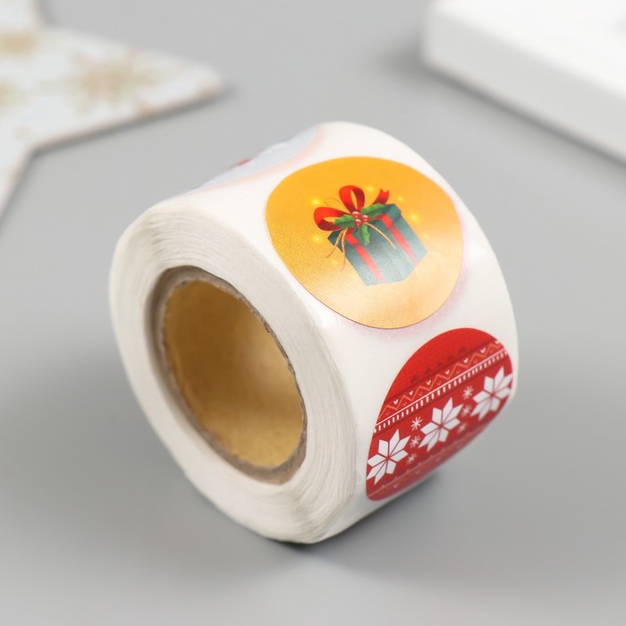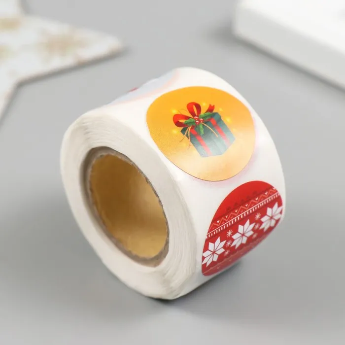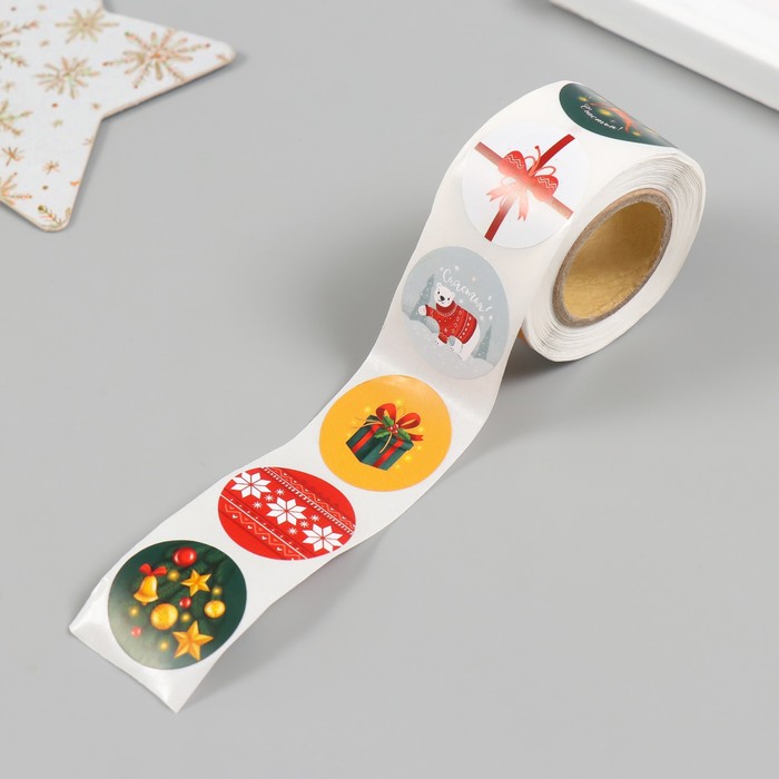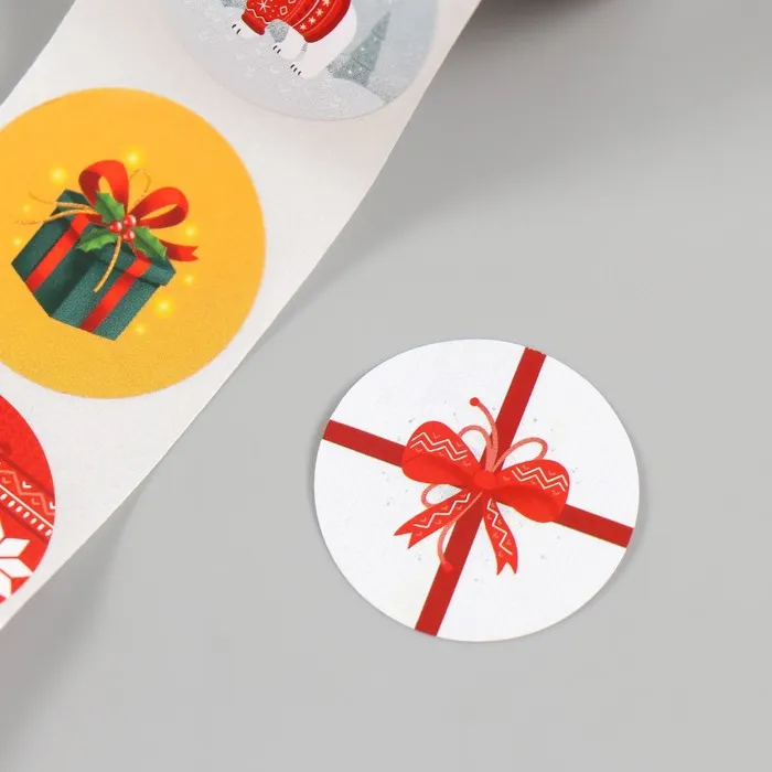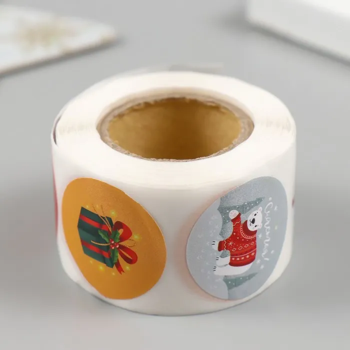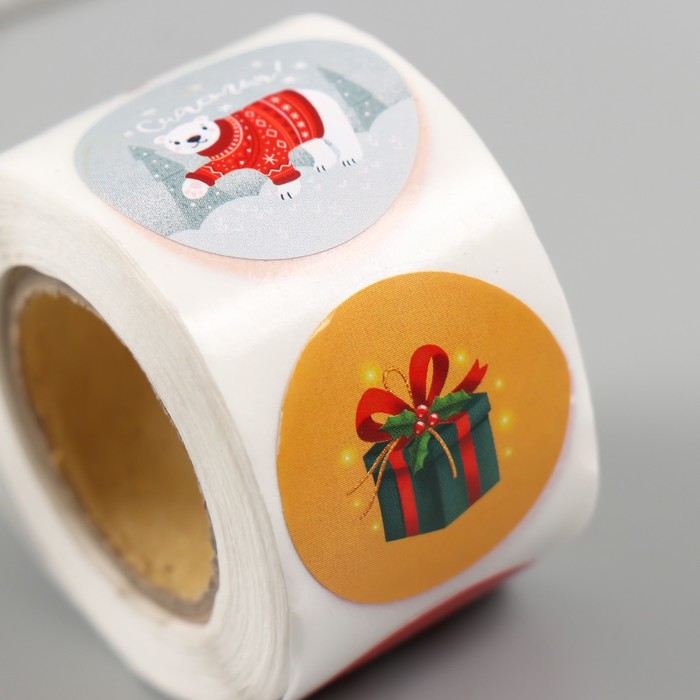 Наклейка бумага "Мишка и олень новогодние" d=2,5 см 252 шт в рулоне — Характеристики