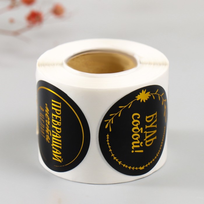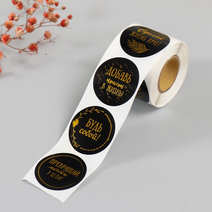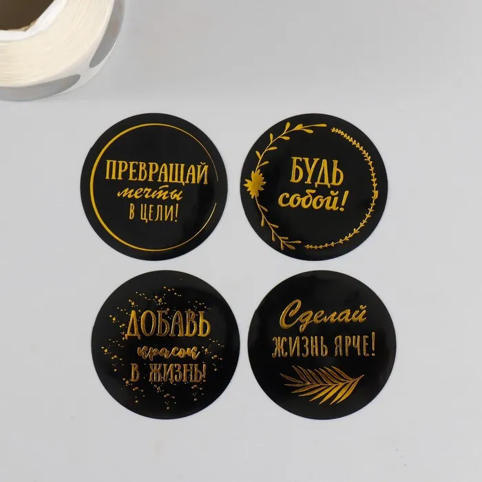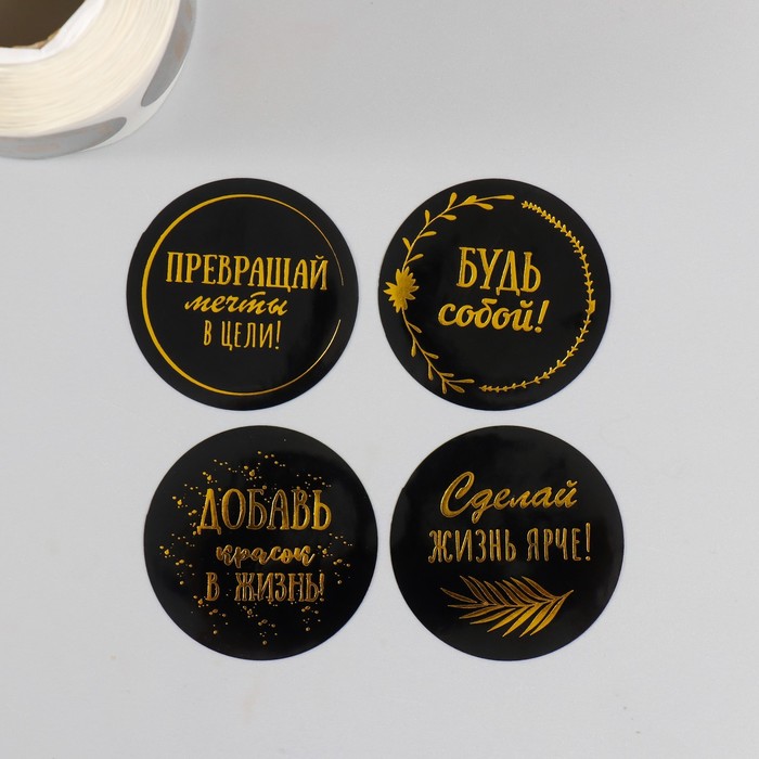 Наклейка бумага "Мотиватор" тиснение золото d=3,8 см 252 шт в рулоне — Характеристики