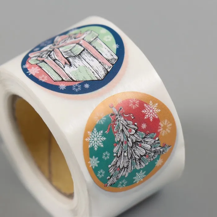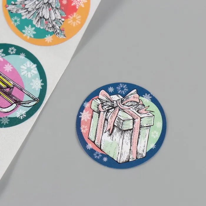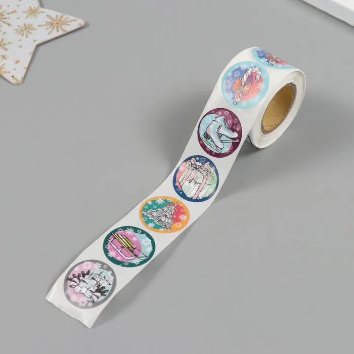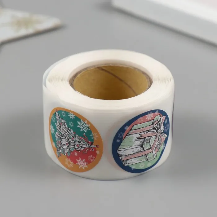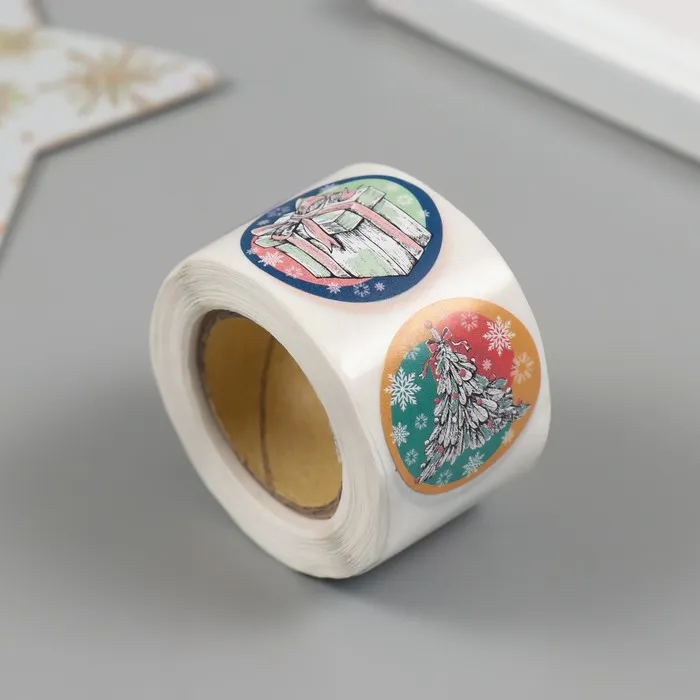 Наклейка бумага "Нарисованный Новый год" d=2,5 см 252 шт в рулоне — Характеристики