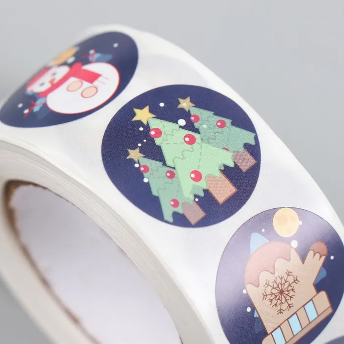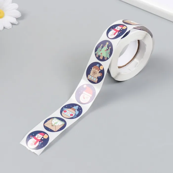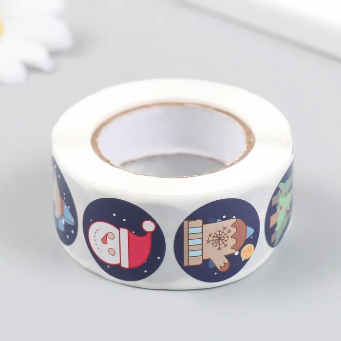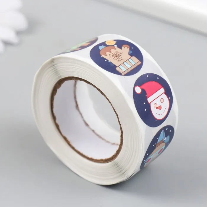 Наклейка бумага "Новогодние атрибуты" d=2,5 см 500 шт в рулоне 3х6,5х6,5 см — Характеристики