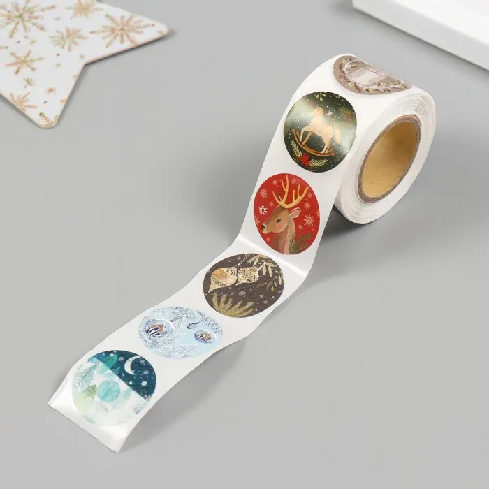 Наклейка бумага "Новогодние игрушки" d=2,5 см 252 шт в рулоне — Характеристики