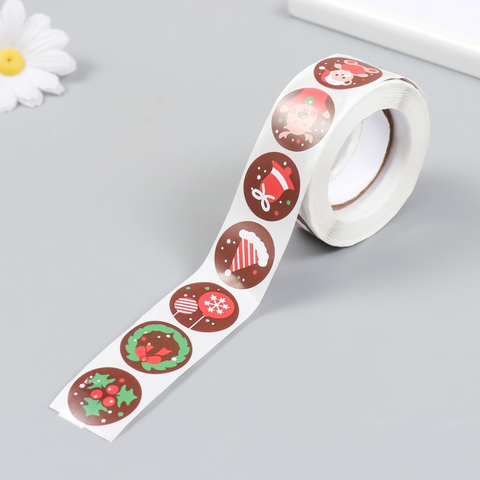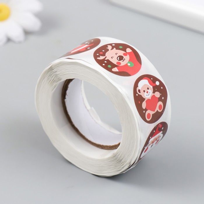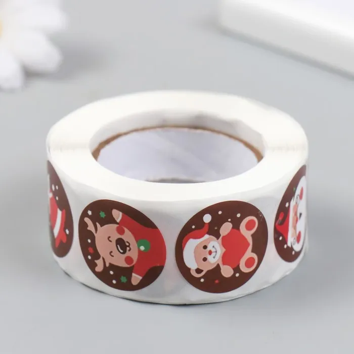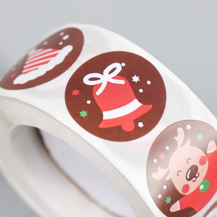 Наклейка бумага "Новогодние радости" d=2,5 см 500 шт в рулоне 3х6,5х6,5 см — Характеристики