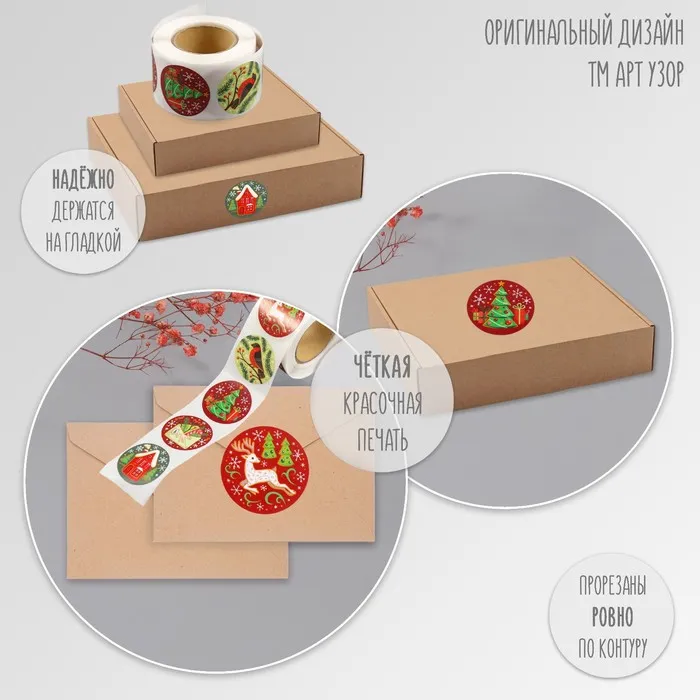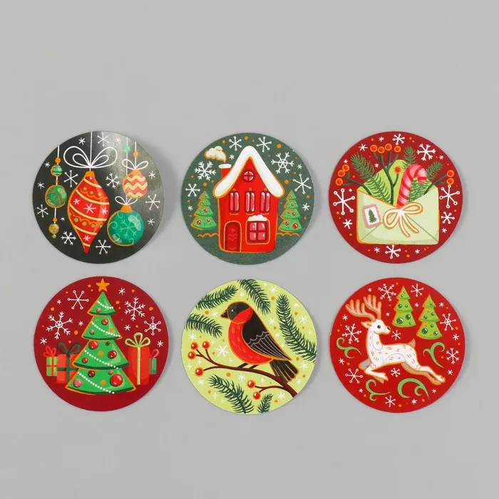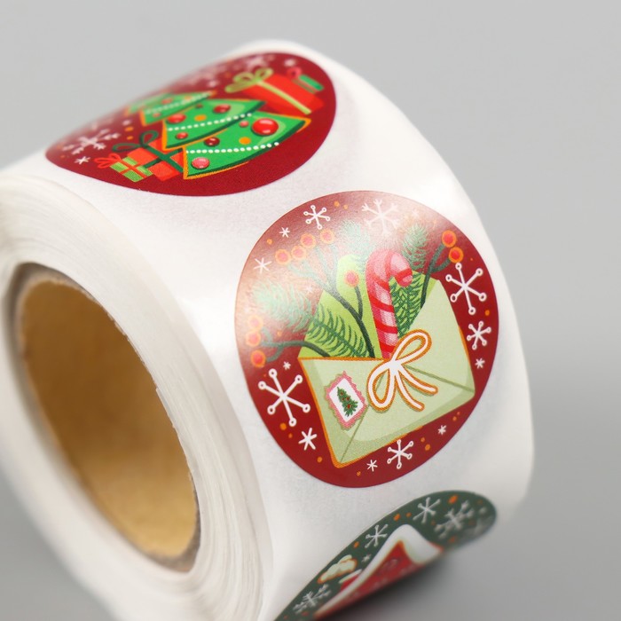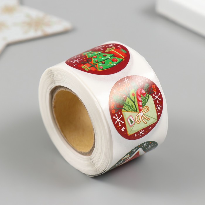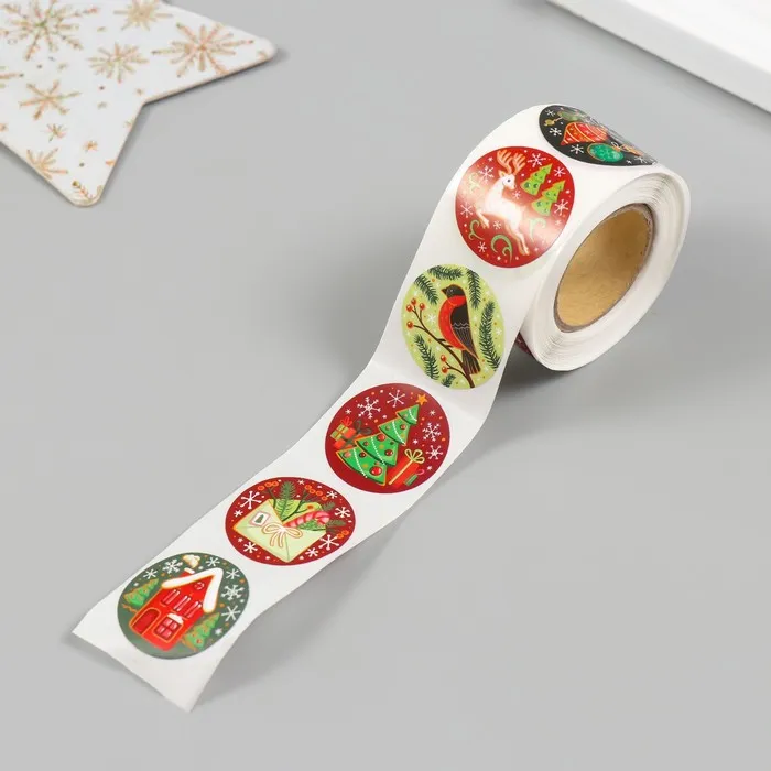 Наклейка бумага "Новый год" d=2,5 см 252 шт в рулоне — Характеристики