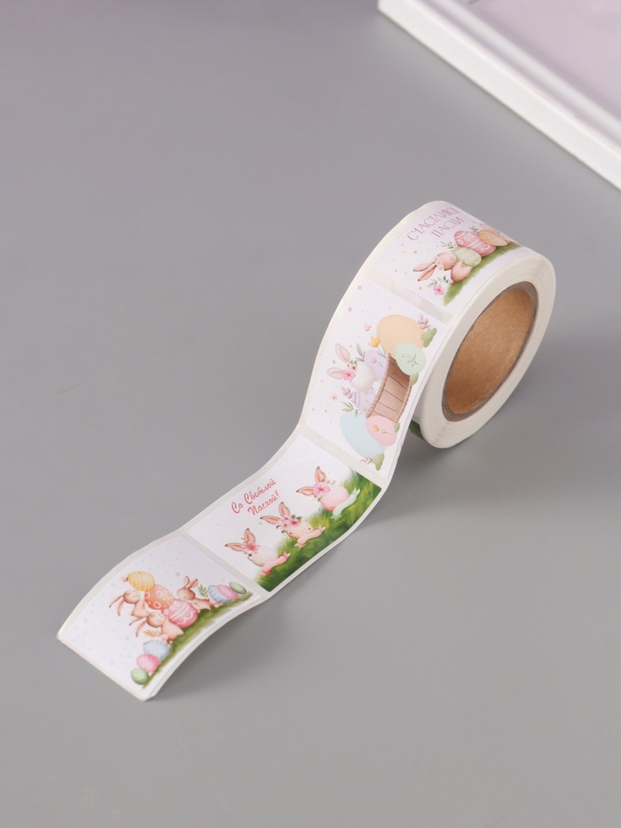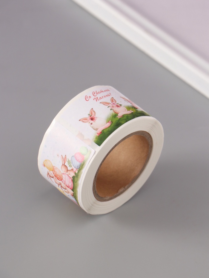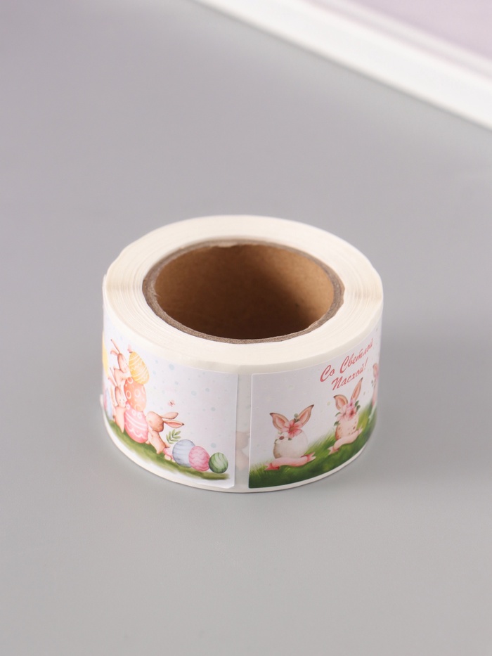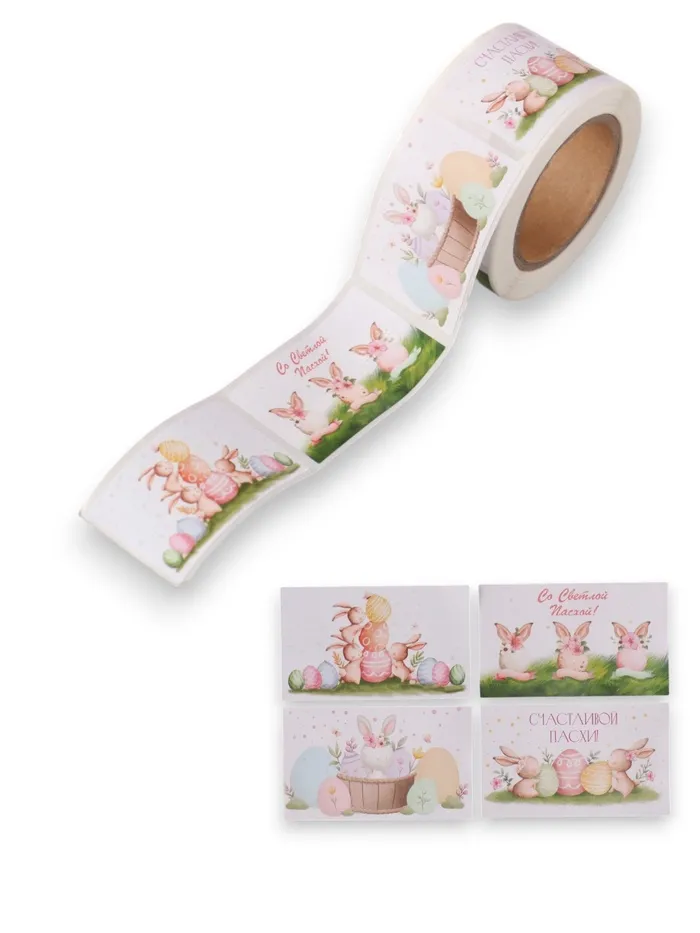 Наклейка бумага "Пасхальные кролики" 3х5 см 200 шт в рулоне — Характеристики