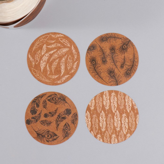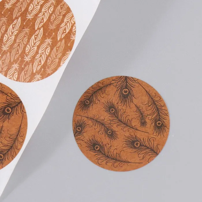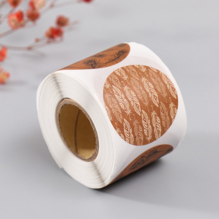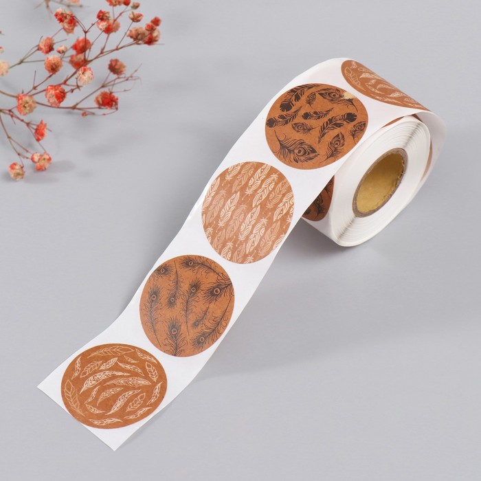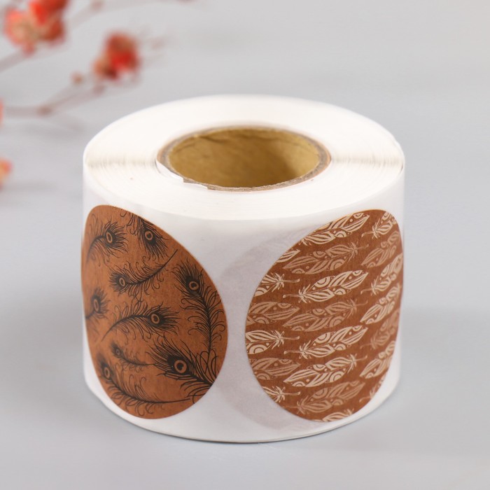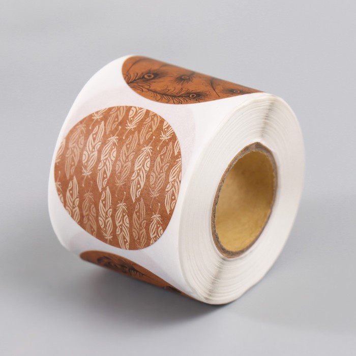 Наклейка бумага «Перья», крафт, d=3.8 см, 252 шт. в рулоне
