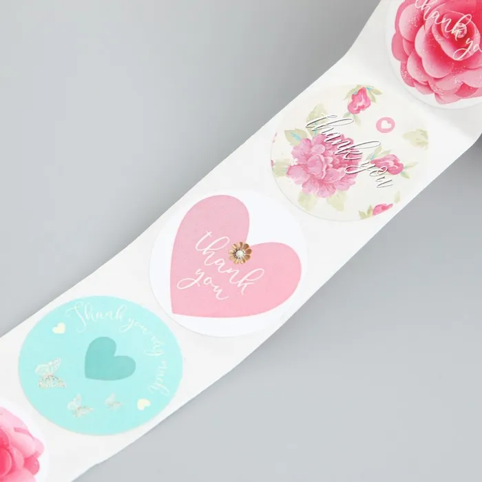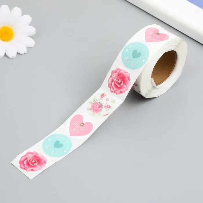 Наклейка бумага "Пионы и сердца" d=2,5 см 500 шт в рулоне 3х6,5х6,5 см — Характеристики