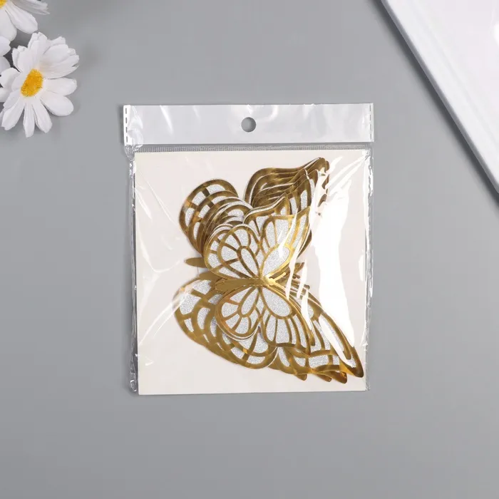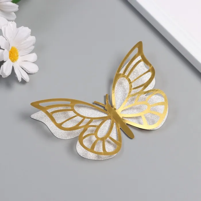 Наклейка бумага, пластик "Бабочки, серебристый глиттер" набор 12 шт 12 см, 10 см 8 см — Характеристики