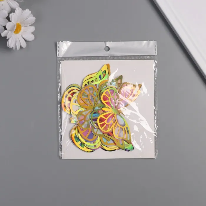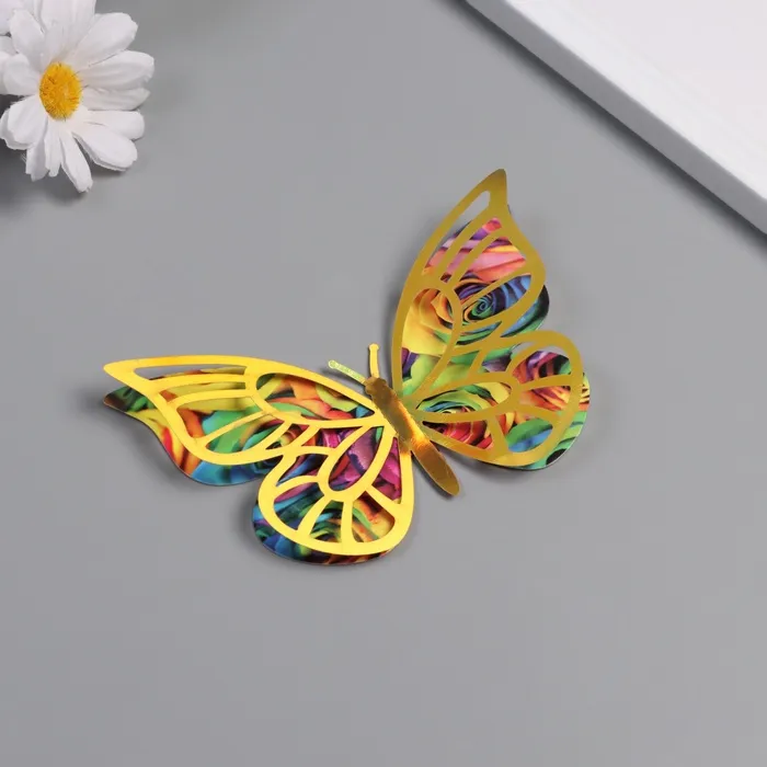 Наклейка бумага, пластик "Бабочки, цветные пятна" золото набор 12 шт 12 см, 10 см 8 см — Характеристики