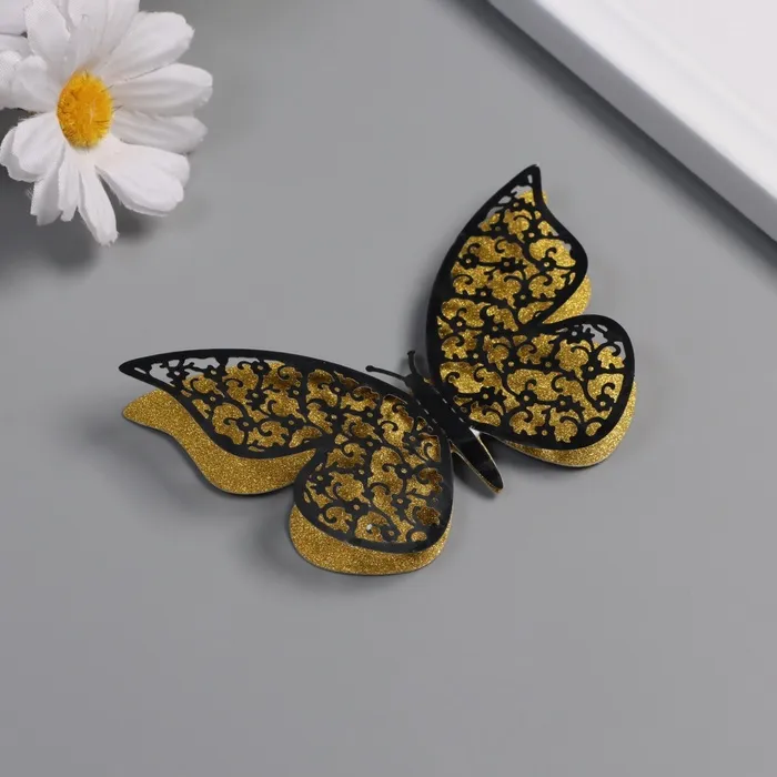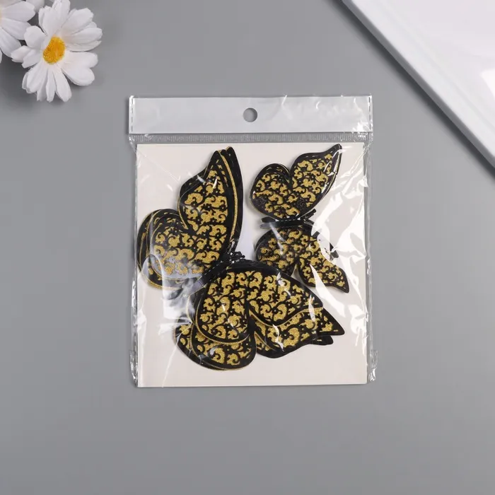 Наклейка бумага, пластик "Цветочные бабочки золото" блёстки набор 12 шт 12 см, 10 см 8 см — Характеристики
